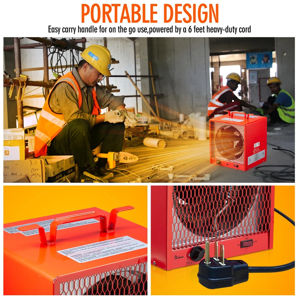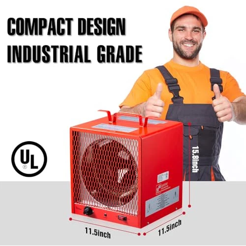 The DR988A industrial electric garage heater is perfect for warming any construction site, garage, basement, and workshop with its specially designed heating element and features an impressive portable design. It comes with a built in thermostat that can be adjusted from low to high. It also features a fan that provides continuous warmth. The DR988A industrial heater is dependable and sturdy. 240-Volt is required. Power Consumption 5600-Watt *Special Outlet (NEMA# 6-30R) is needed for Power Cord (NEMA# 6-30P)* Power Cord : NEMA#6-30P (receptacle NeMA #6-30R 250V 30 Amps) Temperature Range: 37-113 °F degree. Comes with Thermostat control Auto Overheat Cut-Off Protection. UL and C-UL listed
