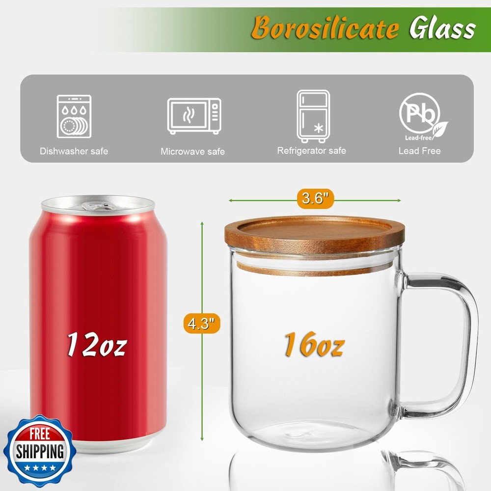 DRASTAR Glass Coffee Cups, 16 oz Coffee Mugs, Flat Bottomed Cups with Acacia Wood Lid, Glass Tea Cup with Handle, Clear Tea Cup Set of 2 Features PREMIUM BOROSILICATE GLASS MUG:16 oz borosilicate glass mug is lighter than other ordinary glass cups, more transparent and clear, with thin walls but strong enough. heat-resistant, Lead-free, BPA-free. withstands temperatures from -4℉ to 350℉, you can seamlessly switch between iced drinks and freshly brewed hot coffee FLAT-BOTTOMED & DISHWASHER SAFE: Glass mugs with handles have a flat bottom and wide mouth design, can be heated with coffee warmer, and are also easy to clean. Heated coffee mugs are safe for dishwasher and microwave use(For glass mugs only), non-toxic, BPA, and lead-free, fit most coffee machines and water dispensers HANDMADE OF ACACIA WOOD LID: 16 oz Clear glass coffee cup comes with acacia wood lids, coffee mugs with lids are great for keeping coffee or tea warm and reduce the risk of spilling while you walk from the kitchen to where you'll be drinking your beverage THICKENED GLASS HANDLE: Glass coffee cups with handles allow you to insulate heat while drinking hot beverages. Wider and thicker handles make picking up clear glass coffee mugs more comfortable. The glass is thicker than most glass coffee mugs, but lightweight 16 oz CLEAR COFFEE MUG: Glass coffee mug with lid is versatile and ideal for coffee, latte, espresso, cappuccino, tea, overnight oats, or any other hot or cold drinks. clear glass coffee cup with high visibility for presenting coffee art, you can easily see the color in the glass cup and better grasp the strength of the coffee or tea Shipping Free & Fast Shipping: We offer free shipping to most of the USA with a normal delivery time of 3-7 days. However, due to the current situation, additional delivery time (up to 3 weeks) may be required for some items. Alternative Carriers: We may use alternative carriers (e.g., USPS, FedEx, UPS) to ensure your package arrives safely and on time. Due to the use of multiple carriers, we are unable to provide a tracking number automatically. Handling Time: Orders are processed and shipped within 1-2 business days of receiving cleared payment. Shipping Restrictions: Shipping to Alaska, Hawaii, Puerto Rico, Guam, and other US territories may incur shipping charges or delivery restrictions. Please contact us before ordering, or your order can be refunded/cancelled. State Restrictions: Certain items may not be shipped to California due to state regulations. Contact for Tracking Updates: If you require tracking updates or have any concerns about the delivery of your order, please feel free to contact us, and we will be happy to assist you. Return Policy 30-Day Hassle-Free Returns: If you are not completely satisfied with your purchase, you can return the item for free within 30 days of receiving it for a full refund or exchange. Easy Return Process: Contact us, and we will provide you with a prepaid return shipping label and detailed instructions. No Restocking Fee: There are no restocking fees for returns. However, the buyer is responsible for return shipping costs if the return is not due to a seller"s error. Refund Processing: Refunds will be processed within 1 business day of receiving the returned item in its original condition. Feedback Your feedback is extremely important to us. We strive to provide the best products and customer service possible. If you are satisfied with your purchase, please take a moment to leave us a positive review. If you have any concerns or issues with your order, please contact us before leaving negative feedback. We are committed to resolving any problems and ensuring your satisfaction. Contact Us If you have any questions or concerns, please feel free to reach out to our customer support team. You can contact us through the eBay messaging system. We are available Monday to Friday, 9:00 am to 5:00 pm EST, and we will do our best to respond to your inquiry within 24 hours. Thank you for supporting our small family business!