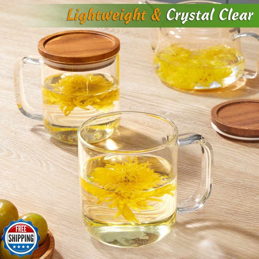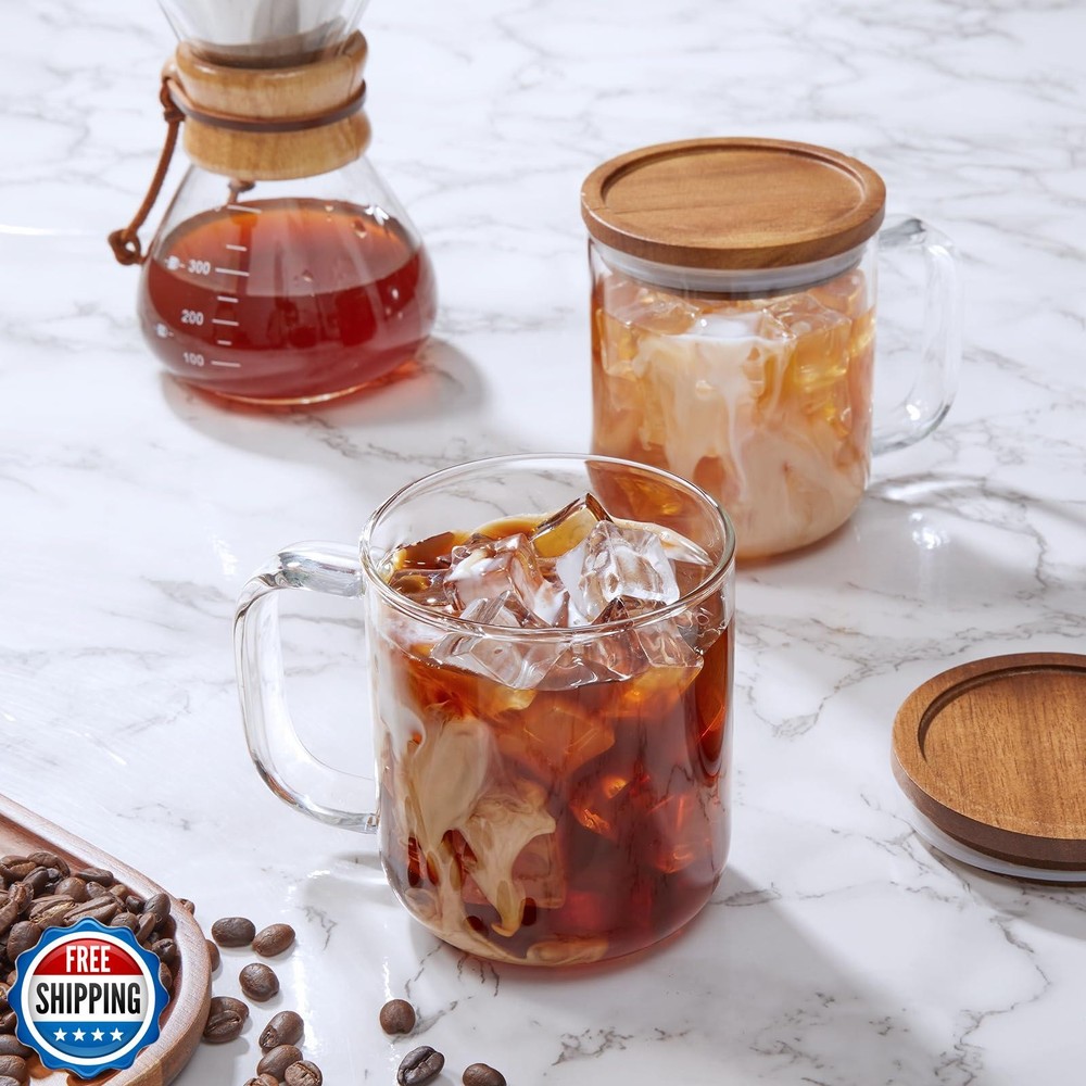 Just got these beautiful glass mugs and I'm obsessed! The clarity is stunning - you can really appreciate the color of your coffee or tea. Love how they handle both hot and cold drinks without any issues. The wood lids add such a nice rustic touch, and they're surprisingly durable despite feeling lightweight. Perfect for my morning latte or evening iced tea!
