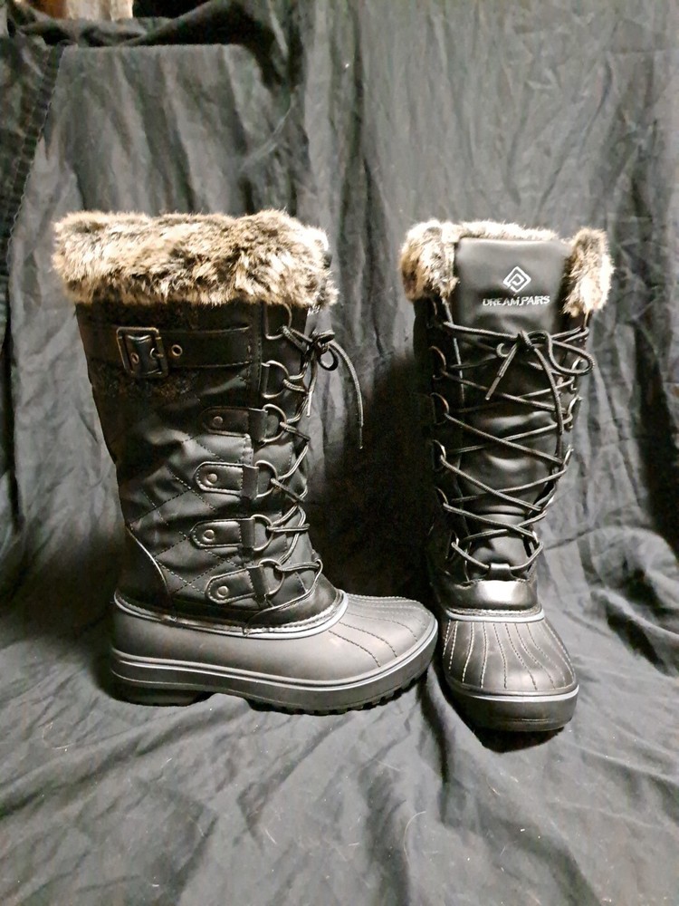 DREAM PAIRS Women's BLACK Warm Faux Fur Lined Mid Calf Winter Snow Boots Size 5 See photos for condition, worn once. The person needed a 5.5 or 6, so these were to tight for them