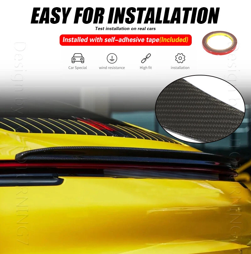 Fitment: Fits for Porsche 911 992 Carrera 4 S 4S Targa 4S 2-Door 2019-2020 Specifications: Product Name: Rear Spoiler Material: Carbon Fiber Size: Length: 116.6cm Features: Made of High Quality Lightweight Carbon Fiber. Latest Design GT Wing Spoiler Completed Kit, Improve Handling And Make Tail More Stable in High Speed. Water Transfer Carbon Fiber for Highest Durability and Appearances. Adjustable Angles for Customizable Usages and Efficiencies, Enhances Aerodynamic. Reduces Drag, Increases Fuel Efficiency, Reinforces Downforce, Traction and Stability. Double-sided adhesive paste, Easy to Install. Package included: 1 x Spoiler with self-adhesive glue tape Carbon Fiber Spoiler FOR Porsche The Rear Trunk Spoiler is one of the simplest mods you can do to the exterior of your car that will give your car that completely different look. Not only are spoilers meant for great looks, they also help with the aero dynamics of the car by lowering drag, or helping to put more downforce on the car making sure that the wheels stay grounded for maximum traction. Fitment: Fits for Porsche 911 992 Carrera 4 S 4S Targa 4S 2-Door 2019-2020 Specifications: Product Name: Rear Spoiler Material: Carbon Fiber Size: Length: 116.6cm Features: Made of High Quality Lightweight Carbon Fiber. Latest Design GT Wing Spoiler Completed Kit, Improve Handling And Make Tail More Stable in High Speed. Water Transfer Carbon Fiber for Highest Durability and Appearances. Adjustable Angles for Customizable Usages and Efficiencies, Enhances Aerodynamic. Reduces Drag, Increases Fuel Efficiency, Reinforces Downforce, Traction and Stability. Double-sided adhesive paste, Easy to Install. Package included: 1 x Spoiler with self-adhesive glue tape Delivery details Payment and TAX Return Policy Warranty Contact us Delivery details NOTE: The shipping fee is only for the mainland of each country, it does not include the overseas territories, such as Virgin Islands (U.S.) , Puerto Rico, Hawaii , French Reunion Island, etc. But on ebay, when buyers from Puerto Rico and overseas territories , the shipping fee is equal to United States, it is NOT correct,. please contact us for correct shipping fee, or we will cancel the order. Sorry for the inconvenience, and thanks for your cooperation. 1. Item will be shipped in 10 days, most within 2 days.usually it takes 7-30 days in transit to most countries. 2. If you want to upgrade the shipping, please contact us before making payment, we will revise the shipping fee. 3. We will ship according to your Ebay address. Please make sure it is correct and include phone number for delivery. If you have any questions , please contact us, we would do our best to serve you solve the problem. Payment and TAX 1.We accept Multiple Payment Methods Available: Credit Card, Debit Card, Gift Card, Apple Pay, Goggle Pay, PayPal and PayPal Cred. 2.Please leave note for your special request (e.g. Colors or Size) in ebay note when you pay the order. 3.Your must complete the payment within 7 days or Ebay will automatically open unpaid item case For US Buyer:The invoice value of each item is less than 800USD ,so you no need to pay any tariff . NON-US Buyer Note: Most countries are tax free based on our invoices, if tax is required, which will be buyer's responsibility. Return Policy 1.Customer satisfaction is our top goal. We believe our items are so outstanding. All products are quality checked. They are new and in good condition when shipped to our customers. We are convinced you will be happy with your Purchase. 2.If product is defective or damage upon arrival, or wrong product shipped, please contact us immediately. Returns accepted within 30 days of delivery date and item must be in original new condition, not worn or altered in any way with attached tags & wrap. Otherwise deal is final. Return shipping must be paid by buyer. Please always contact us to resolve any problems, we will do our best to satisfy you. Thanks very much. Warranty 30 Days Money Back It is our goal to provide 100% satisfaction and peace of mind to our customers. If you are not satisfied with the products for any reason within 30 days of receiving the item. (Items must be not opened in their original package. Any mark of installation, mounting, cutting, scratch or using will not be allowed.) Please be free to contact us first if you have any problems.thanks. Contact us 1.We are trying our best to explain all details of the products here! If you have any question, please feel free to contact us by Ebay message, and We will get back to you within 24-48 hours. 2.Customer satisfaction is our NO.1 priority. If you are not happy with the item that you purchase, please contact us first. We will try our best to solve the problem with you.Please leave us a positive feedback if you receive the item.Please do not leave negative or neutral feedback without any contact.If you haven't received item in 30 days, please contact us and we will arrange refund.We appreciate your business.Happy Bidding & Have a nice day! 3.Working hours: From 8 a.m. to 6 p.m. from Monday to Friday. From 8 a.m. to 12 a.m. on Saturday morning Holiday/Rest time: Saturday afternoon and Sunday