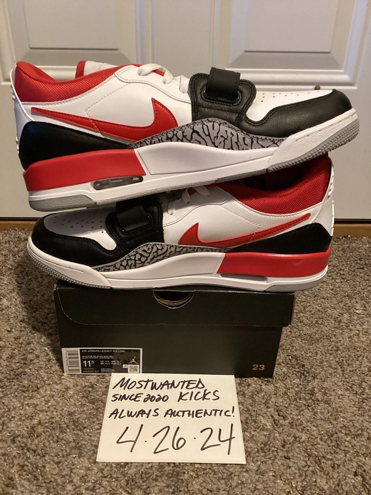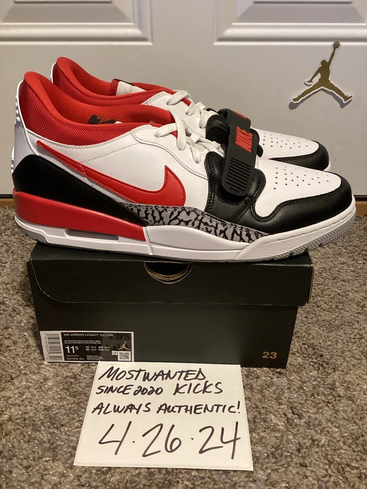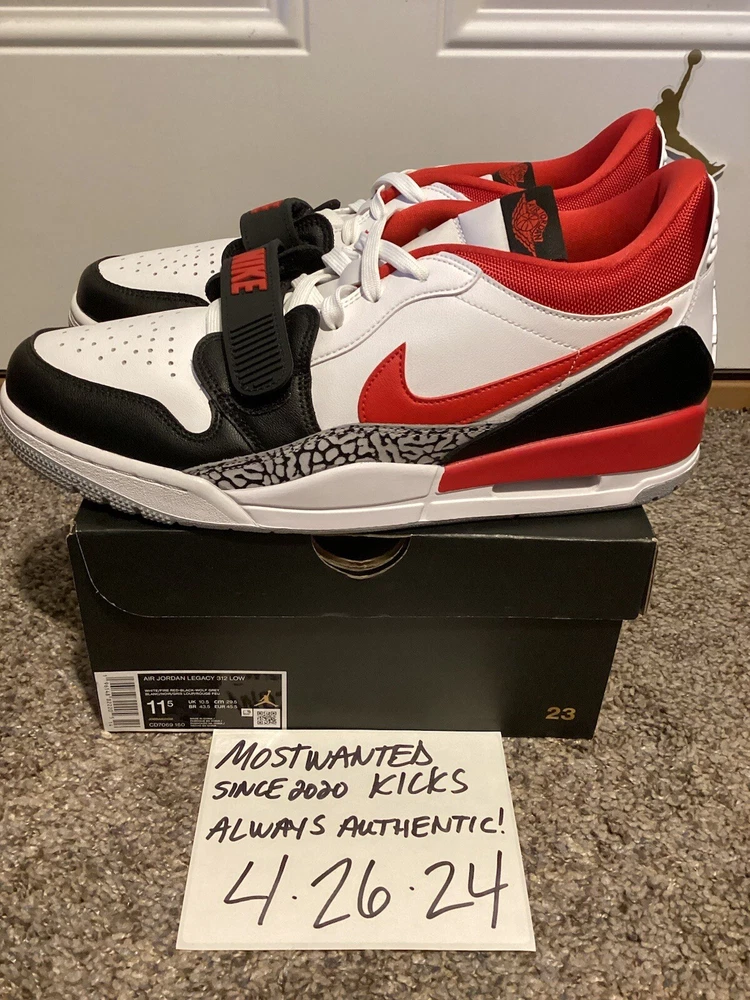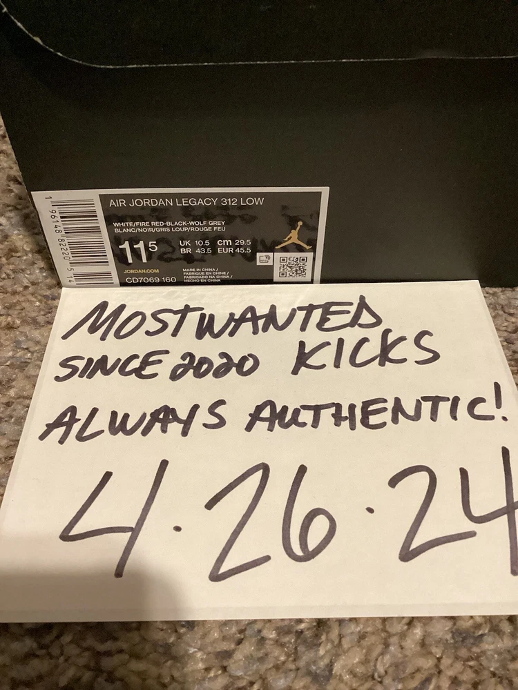 Hello! What we currently have for sale today is a brand new in box pair of 2022 Nike Air Jordan Legacy 312 Low “Black Toe Fire Red”, sneakers in a size 11.5 Men’s. The actual color scheme of the shoes are White, Fired Red, Blsck & Wolf Gray. These are 100% new in box and authentic. Original MSRP on these was $130.00. 🔥🔥🔥These have been sold out since they released, so don’t out on an opportunity to pick them up again!! 👀👀👀Keep an eye out for several more fixed price auctions coming soon!! ****PLEASE KEEP IN MIND**** SHIPPING- Handled directly through eBay’s authentication program. RETURNS/REFUNDS/EXCHANGES- NOT ACCEPTED ALL SALES ARE FINAL!! DISCLAIMER- We are not responsible for any defects of any kind from the manufacturers. All listings are 100% valid based on the exact item you are bidding on/purchasing. About us: MOSTWANTEDKICKS was established in NY in 2020. The experience with sneakers, clothing, collectibles and culture has spanned back into the early 2000’s. Feel confident in doing business with us as we advertise by photos, exactly what you will receive!! We respect and support a safe buying platform online to conduct business. Please save us as a favorite seller and look to the future for more no reserve and fixed priced auctions!!