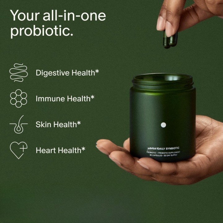 Product Description Daily Synbiotic – Prebiotic & Probiotic for Men and Women 60 Capsules (30-Day Supply) About this item 2-in-1 Formula : A balanced blend of probiotics and prebiotics designed to support digestive health and gut balance. Whole-Body Benefits : Helps improve digestion, reduce bloating, support immune function, promote skin wellness, and contribute to overall comfort. Advanced Capsule Design : Developed to survive stomach acid and deliver beneficial bacteria effectively to the gut. Shelf-Stable : No refrigeration required, making it convenient for storage and daily use. How to Use : Start with 1 capsule daily for the first 3 days. Increase to 2 capsules daily afterwards (or as needed). Mild digestive changes may occur in the first week, which usually resolve with continued use. Key Features Suitable for both men and women. 100% vegan-friendly. Free from dairy and preservatives. 60 capsules = 30-day supply.