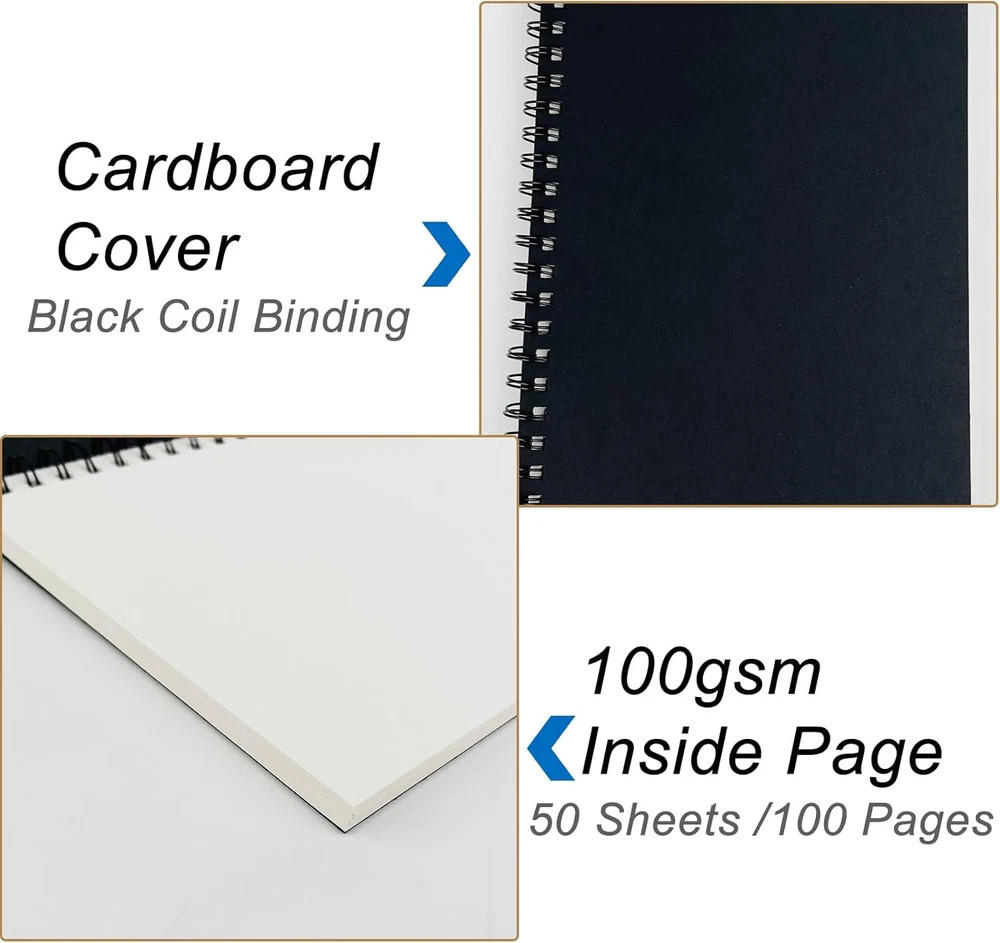 Size: 19cm x 13cm / 7.5 inch x 5.1 inch, perfect size for handbag, schoolbag or backpack. Blank inside pages: With 100 blank pages / 50 sheets in each of the books. Material: Thick paper prevents ink from inks through the pages. Package Contents: 1pcs black blank notebooks. Wide usage: Ideal for a diary, travel journal, poetry work, creativ e writing, making sketches and drawings, Work records, study notes, mood diary, scrapbooks and so on. Package Contents: 1pcs black 19cm x 13cm / 7.5 inch x 5.1 inch black blank notebooks. With 100 blank pages / 50 sheets in each of the books.