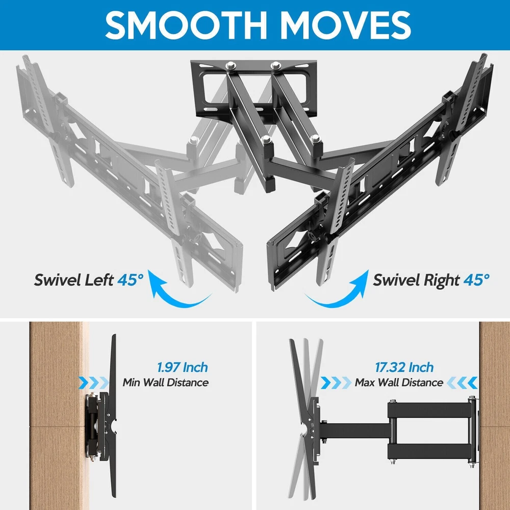 Pet Hair Remover Dog Cat Comb Grooming Massage Deshedding Self Cleaning Brush US 7.1 USD 8.99 USD Free shipping 21% off RECHARGEABLE LED Light-up Flash GLOW COLLAR Dog Pet Safety MICRO USB adjustable 7.51 USD 7.99 USD Free shipping 6% off Pants Rack Shelves 5 in 1 Multi-functional Stainless Steel Wardrobe Magic Hanger 6.8 USD 7.99 USD Free shipping 15% off Solar Power 23 ft 50 LED Flower Fairy Garden Lights Outdoor Decor Waterproof 10.33 USD 10.99 USD Free shipping 6% off Pet Hair Remover Reusable Cat and Dog Hair Remover for Furniture Couch 7.5 USD 10.99 USD Free shipping 32% off Self-Adhesive Leather Repair Patch Tape for Car Seats Couch Sofa Chair Jacket 5.6 USD 10.99 USD Free shipping 49% off Pants Rack Shelves 5-in-1 Steel Multi-functional Wardrobe Hanger 6.2 USD 8.99 USD Free shipping 31% off Wall Mount Magnetic Knife Scissor Storage Holder Rack Strip Kitchen Tool 8.45 USD 8.99 USD Free shipping 6% off Wireless Bluetooth LED Light Speaker Bulb RGB E27 12W Music Playing lamp Remote 9.8 USD 13.99 USD Free shipping 30% off Tactical Dog Collar w/ Handle +Leash Heavy Duty Military Service Canine Training 12.5 USD 15.99 USD Free shipping 22% off Reusable Dog Cat Pet Hair Remover Roller for Furniture, Couch, Carpet, Car Seat 7.1 USD 12.99 USD Free shipping 45% off Solar Power 46 ft 100 LED Flower Fairy Garden Lights Outdoor Decor Waterproof 15.2 USD 19.99 USD Free shipping 24% off SAFE & SECURE SHOPPING 100% SATISFACTION GUARANTEED FAST SHIPPING You may also like Bathroom Accessories Set 6 Pcs Toilet Paper Holder Towel Bar Hooks Matte Black 19.5 USD 23.99 USD Free shipping 19% off Cast Iron Grill Press Weight Steak Burger Press Griddles Flattops Bacon Paninis 15.4 USD 19.99 USD Free shipping 23% off 2 Pack Electric UV Mosquito Killer Lamp Outdoor/Indoor Bug Insect Zapper Trap 18.04 USD Free shipping Electric Mason Jar Vacuum Sealer Kit for Wide Mouth and Regular Mouth Mason Jars 17.5 USD 19.99 USD Free shipping 12% off 35 PCS Christmas Charms Cartoon Kids Children Shoe charms Compatible Crocs 7.1 USD 14.99 USD Free shipping 53% off Reusable Dog Cat Pet Hair Remover Roller for Furniture, Couch, Carpet, Car Seat 7.1 USD 12.99 USD Free shipping 45% off DUAL ARM SWIVEL LCD LED FULL MOTION TV WALL MOUNT 32 42 47 50 55 60 65 70 75 80 Product Description DUAL ARM SWIVEL LCD LED FULL MOTION TV WALL MOUNT 32 42 47 50 55 60 65 70 75 80 This Dual arm full-motion mount accommodates most 32"-80" flat panel TVs up to 88lbs. This mount extends out 14" from wall and allows full-motion capabilities. Full motion allows maximum flexibility, tilts and swivel your TV for easy viewing from any seat in a room. Its post-installation leveling adjustment ensures the TV is perfectly positioned on the wall. Integrated cable management system keeps cables organized and protected. FITS MOST SCREEN SIZES 32" - 80" Screen size support used as a general guideline only. Actual fit is determined by the VESA measurements and weight capacity of this mount. VESA measurements are your mounting hole distance on the back of your TV Supports TVs up to 88lbs VESA mounting pattern max: 100 mm x 100 mm 600 mm x 400 mm (23.6 x 15.75 inches max) Includes all mounting hardware required to install mount onto wall. Common screws included to install TV onto mount. These included screws will fit 95% of TV on the market. If you TV requires special screws, they will need to be purchased separtly from a hardware store. TV tiles +3/- 15 degrees Swivels freely from side to side Max TV to wall distance: 14" Safety Retaining Screw Color: Black About Us Payment Shipping Returns Contact Us About Us 1. Welcome! We specialize in home & garden products, such as solar sensor light, LED grow light, TV wall mount bracket, shelf bracket, towel bar, pants rack, nail file clippers, vacuum sealer and bags, food container, vegetable chopper, sink strainer, can opener, air fryer liner, cookie mold and ect. Our warehouse locates in Forney. It is a clean and smoke-free warehouse. Packages will be shipped to you FREE (domestic only) within 24 hrs. Guarantee of 30-days money back is also provided. We keep on sourcing, and will constantly update our cool & creative products. If you get interest in any cool merchandise overseas, something not shown on eBay, please do not hesitate to contact us. We’ll do our best.We dedicate to provide high-quality products only and create a relax and reliable shopping site for every single customer. If you are happy here, please leave positive feedbacks, your encouragement means a lot to us. If there is anything we can do for you, please feel free to let us know. 2.We also has over 5 years of shipping experience with FedEx and USPS . Our Packing Quality is Guaranteed , Item Ship-ping is timely! Payment 1.We accept PayPal and all forms of credit card. 2.We will only ship to the confirmed Paypal shipping address given with the payment. 3.We do not offer local pick up service. Shipping 1.The shipping rates listed are only for residential or commercial destinations in the continental 48 United States. All international sales will go through eBay Global Shipping Program.please ask us if there are any questions. 2.We only ship the item to the address that is sent to us at the time of checkout. Please verify the correct shipping address in your PayPal account before making your payment. If we ship your item to an old or invalid address and you are not able to locate the item, we are not responsible for shipping a replacement. 3.Currently, we do not ship to Hawaii, Alaska, Puerto Rico,APO/FPO/PO Boxes. 4.We use USPS, UPS & FedEx as shipping method. 5.Payments cleared before 12 PM PST, will be shipped on the same day. Returns 1.30 days Money Back Guarantee. 2.If any package that needs to be returned, please contact our customer service first to receive a RMA form. 3.All return items MUST be in brand new condition. Contact Us l Your five-star reviews help us grow and improve our business, and help us keep eBay fees down. Please give us posi