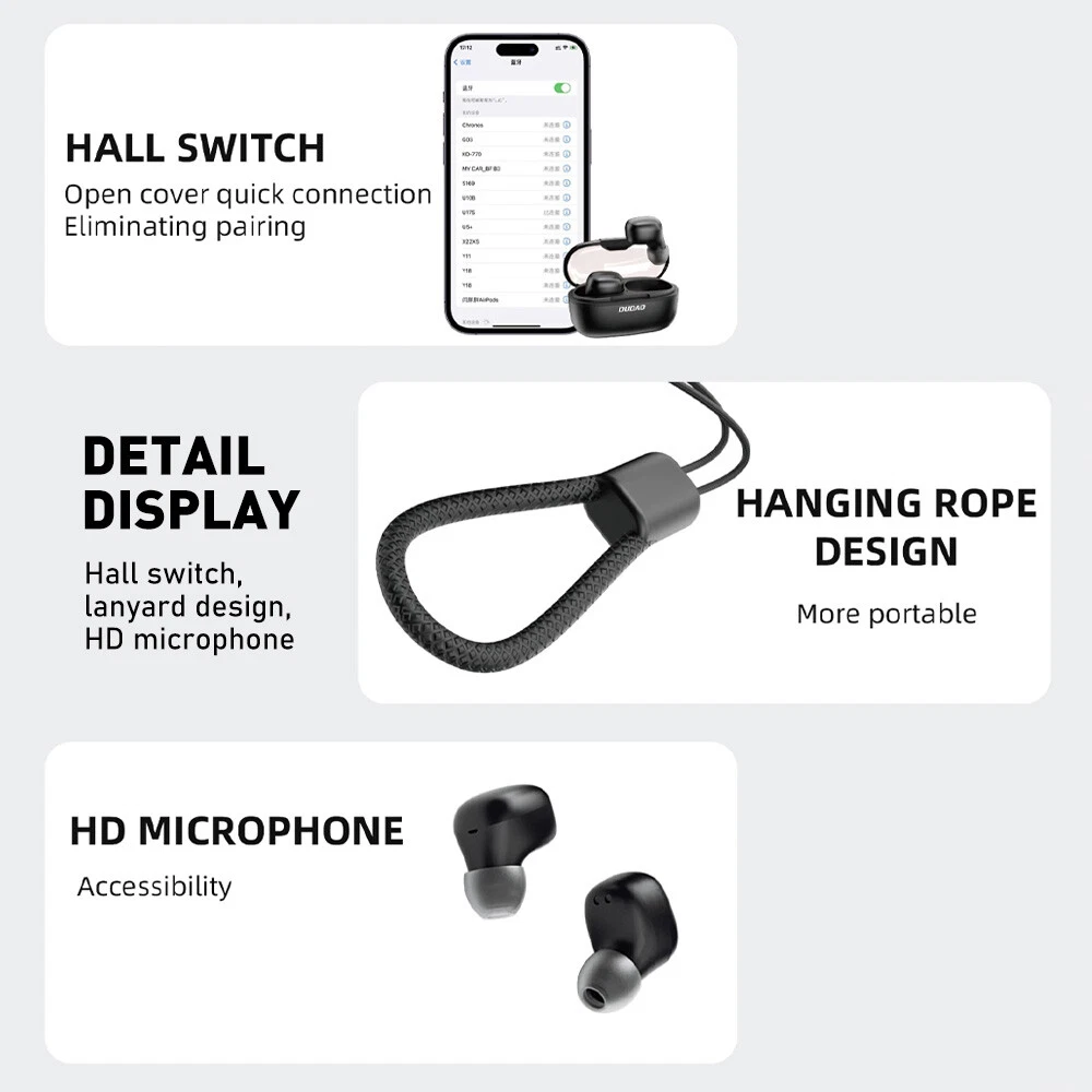 Description: Type: Bluetooth Earphones Microphone Type: Built-In Number of Earpieces: Double Type: Canal Earbud (In Ear Canal) Color: Black Earpieces: Left & Right Model: Chooes from drop down Feature: 1. Unique Style: Made of memory silicone, it is non-deforming so it can clip there firmly without dropping. 2. HiFi Super Bass: Built-in high-grade composite moving coils deliver lossless sound, clear treble and deep bass, bringing you utmost pleasure of listening. 3. Intelligent Noise Reduction: Lower noise, high-definition binaural call. Communicate clearly. 921modigt Your Best Online Business Partner DUDAO Earbud/Clip-ear Bone Conduction Wireless Headset Bluetooth Sport Headphone Description: Type: Bluetooth Earphones Microphone Type: Built-In Number of Earpieces: Double Type: Canal Earbud (In Ear Canal) Color: Black Earpieces: Left & Right Model: Chooes from drop down Feature: 1. Unique Style: Made of memory silicone, it is non-deforming so it can clip there firmly without dropping. 2. HiFi Super Bass: Built-in high-grade composite moving coils deliver lossless sound, clear treble and deep bass, bringing you utmost pleasure of listening. 3. Intelligent Noise Reduction: Lower noise, high-definition binaural call. Communicate clearly. 4. Single Earbud Weighs Only 5Grams: With an ultra-light body, it offers a comfortable and secure fit that do esn't cause any ear fatigue or discomfort , providing an unrestricted listening experience that feels weightless and comfortable. 5. Long Battery Life: Fully charged once, the earphones can be used for 3 or 4 hours. If used with the charging case, it can work for up to 16 hours. Stand by for over 120 hours. No frequent power off. You can happily play games, listen to music and watch videos. 6. Easy Touch Control: Rich functions are started by touch operation. No complicated procedures. You will get used to controlling the earphones quickly. Usage: Step 1: Turn on the phone’s Bluetooth. Step 2: Open the charging case cover. Step 3: The connection interface will show on the phone. Step 4: Wait for the phone screen to show that the connection is successful, then take out the headphones and use it. Package Includes: 2x Earphone (left&right) 1x Charging Case 1x User Manual Note: Come With original box If you have any problem, please contact us, thank you! Item Specifics Brand DUDAO Type Earbud (In Ear) Model DUDAO U17H/U17S/U17 Connectivity Bluetooth Color Black Manufactured Earphnoe, Headset, Wireless Earphone Number of Earpieces Double Form Factor Ear Clip/ In ear Microphone Type Built-In Compatible Brand Universal, For Apple, For Google, For LG, For Samsung Name Ear Clip Earphone/ TWS Mini Earbud/ OWS Earphone Compatible Model Universal Occasion Sports & Running & Exercise & Entertainment & Music & Driving Features1 Active Noise Cancellation, Bone Conduction,Wireless Features2 Built-in Microphone, Built-In On/Off Switch,Wireless Char Features3 Call functions, HD Voice, Noise Cancellation, Features4 Rechargeable Battery, Stereo, Surround Sound, Features5 Sweat-Proof, Touch Control, Waterproof, Water-Resistant Waterproof IPX6 Other name OWS Open-Air Conduction Wireless Earphone Payment Returns 921modigt Your Best Online Business Partner DESCRIPTION PAYMENT SHIPPING RETURN POLICY CONTACT US Shop Category Store Home Health & Beauty Portable Fans Barbecue Tools Air Filters Leather Repair Memory Cards Headsets Other Hot Item Wireless Bone Conduction Headphones Bluetooth Wireless Sport Headset Earbuds USD 19.29 DUDAO Clip-ear Bone Conduction Wireless Headset Bluetooth Sport Earbud Headphone USD 18.99 Bluetooth Headset Wireless Earphones Earbuds Stereo In-Ear/Ear Clip Headphones USD 19.79 Wireless Bluetooth Headsets Sport Earbuds EAR CLIP/TWS MINI EARBUD/OWS EARPHONES USD 18.99 DUDAO Bluetooth Earbud Headphones / Clip-ear Bone Conduction Wireless Headset USD 18.99 New List Item NEW Wireless Ear Clip Bone Conduction Headphones Bluetooth 5.3 Earbuds Sport USD 18.99 Bluetooth 5.3 Headset Wireless Earphones Earbuds Stereo Ear Clip Headphones USD 18.89 Bluetooth 5.3 Wireless Earbuds Ear Clip Sport Headset Bone Conduction Headphones USD 18.09 Bluetooth 5.3 Earbuds Ear Clip Bone Conduction Headphone Sport Headset Wireless USD 18.55 DUDAO U17H Bluetooth Earphone Earbuds & Charging Case Clip-On Headphones White USD 17.99 Help & Info Payment Policy Shipping Policy Return Policy FAQ About Us DUDAO Earbud/Clip-ear Bone Conduction Wireless Headset Bluetooth Sport Headphone Description: Type: Bluetooth Earphones Microphone Type: Built-In Number of Earpieces: Double Type: Canal Earbud (In Ear Canal) Color: Black Earpieces: Left & Right Model: Chooes from drop down Feature: 1. Unique Style: Made of memory silicone, it is non-deforming so it can clip there firmly without dropping. 2. HiFi Super Bass: Built-in high-grade composite moving coils deliver lossless sound, clear treble and deep bass, bringing you utmost pleasure of listening. 3. Intelligent Noise Reduction: Lower noise, high-definition binaural call. Communicate clearly. 4. Single Earbud Weighs Only 5Grams: With an ultra-light body, it offers a comfortable and secure fit that do esn't cause any ear fatigue or discomfort , providing an unrestricted listening experience that feels weightless and comfortable. 5. Long Battery Life: Fully charged once, the earphones can be used for 3 or 4 hours. If used with the charging case, it can work for up to 16 hours. Stand by for over 120 hours. No frequent power off. You can happily play games, listen to music and watch videos. 6. Easy Touch Control: Rich functions are started by touch operation. No complicated procedures. You will get used to controlling the earphones quickly. Usage: Step 1: Turn on the phone’s Bluetooth. Step 2: Open the charging case cover. Step 3: The connection interface will show on the phone. Step 4: Wait for the phone screen to show that the connection is successful, then take out the headphones and use it. Package Includes: 2x Earphone (left&right) 