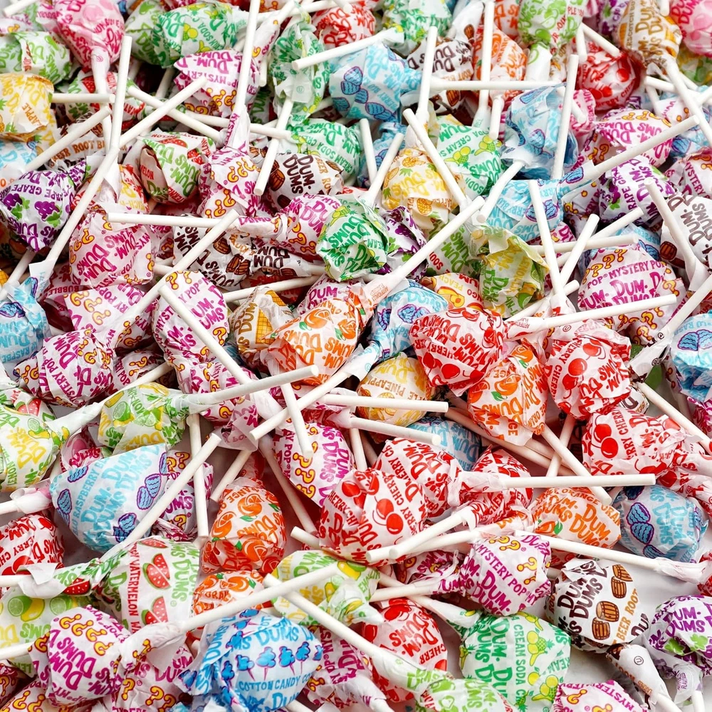 DUM DUMS Original Mix Lollipops, 1 lb Bag (60 Pieces Approx.), 1 Pounds Product Details Package Dimensions : 8.23 x 7.48 x 2.17 inches; 1 Pounds Units : 16.0 Ounce Flavor: Assorted Fruit Flavors Brand: The Hampton Popcorn Company Item Weight: 1 Pounds Allergen Information: Soy, Milk, Wheat, Eggs, Peanuts Package Information: Bag Indulge in the timeless delight of our Dum Dums Original Mix! Unwrap the nostalgia with this assortment of up to 16 individually wrapped lollipops, featuring our beloved classic flavors. From fruity delights to irresistible sweetness, this collection promises to please every craving. Savor the essence of our timeless and beloved Dum Dums flavors! This bulk candy bag boasts up to 16 individually wrapped lollipops, offering a delightful assortment of classic Dum Dums pops ideal for Easter, Valentine's Day, Halloween, Christmas, and children's birthday parties alike! 1lb Bulk Bag of delicious DUM DUMS (60 Pieces Approx.) featuring 16 flavors: Sour Apple, Lemon-Lime, Orange, Peach-Mango, Grape, Blue Raspberry, Cream Soda, Watermelon, Strawberry, Pineapple, Cherry, Butterscotch, Bubble Gum, Cotton Candy, Root Beer & Mystery Pop! PLEASE NOTE: Variety and quantity of each flavor will vary from bag to bag. Since 2003, The Hampton Popcorn & Candy Company has been delighting taste buds with a delectable assortment of popcorn and candy treats, perfect for every occasion.