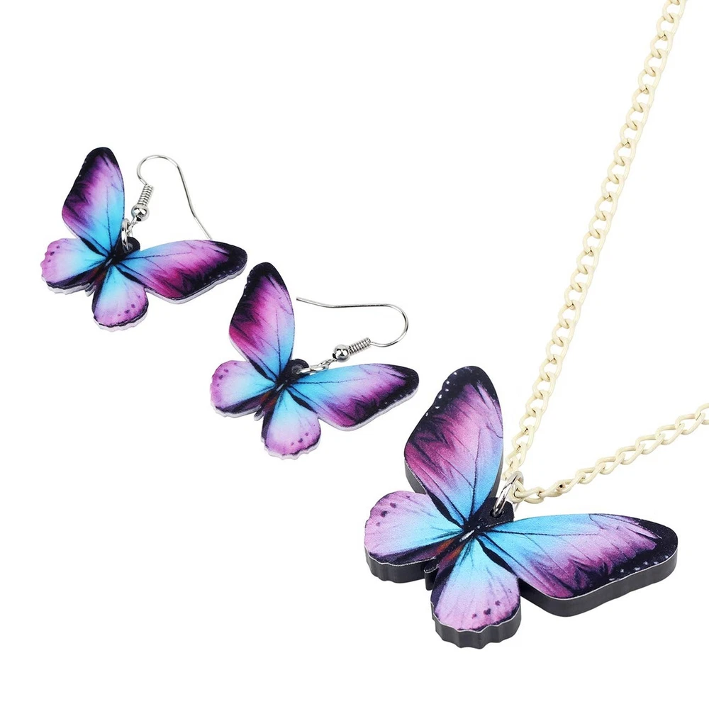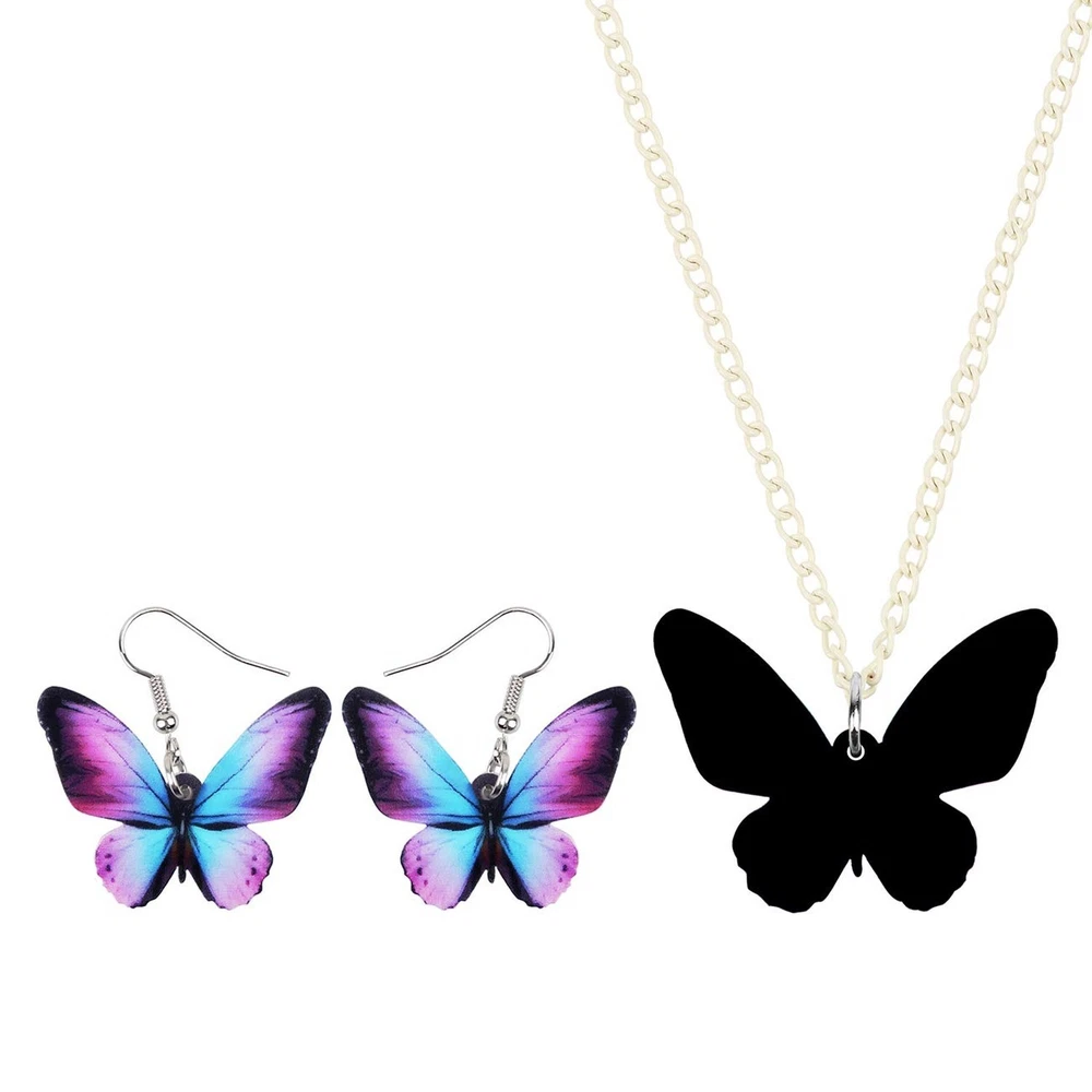 DUOWEI Acrylic Purple Butterfly Jewelry Set Cute Monarch Butterfly Earrings Necklace Charms Insect Dangle Pendant Ornament Gifts for Women Product Details Color: Purple Brand: DUOWEI MPN: Does not apply UPC: Does not apply EAN: Does not apply Product Dimensions : 1.34 x 1.81 x 0.17 inches; 0.65 ounces Department : womens Date First Available : June 2, 2023 Manufacturer : DUOWEI JEWELRY Brand, Seller, or Collection Name: DUOWEI Metal: Stainless Steel Material: Acrylic, Stainless Steel Gem Type: No Gemstone Setting: Other-Setting-Type Item Length: 1.34 inches Chain: U Clasp: Other clasp type Ring size: Adjustable Design&Produce by DUOWEI Jewelry DUOWEI HAVE COPYRIGHTS