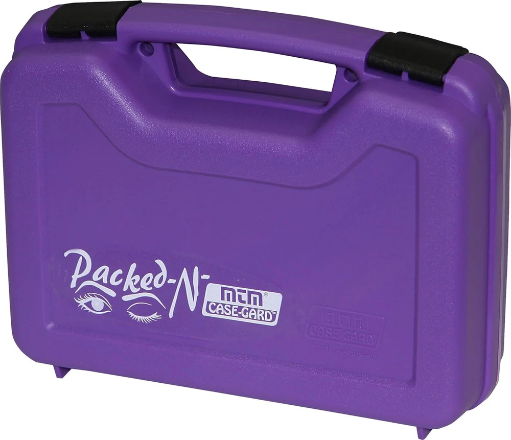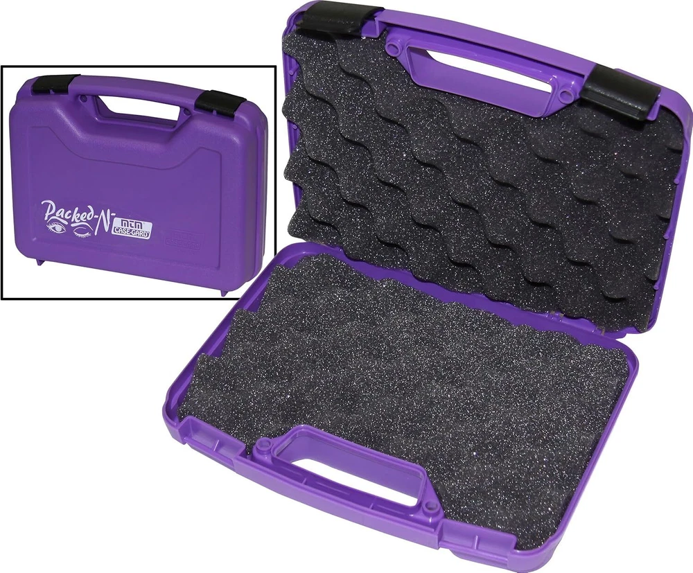 Compact Handgun Case - Durable & Secure Rugged Construction: Made of durable polypropylene with a textured finish for long-lasting use. Thick Foam Padding: Protects your handgun with foam thick enough for a trigger lock . Double Padlock Tabs: Adds extra security for safe storage. Law Enforcement Approved: Suitable for semi-autos and revolvers with barrels 4" or less . Compact Size: Outside Dimensions: 10.1" x 8" x 3.2" | Inside Dimensions: 9.75" x 5.75" x 3.0". Color: Purple, Made in USA . Perfect for secure travel and storage of your firearm.
