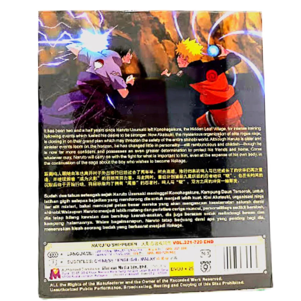 DVD Anime Naruto Shippuden Complete TV Series Vol.221-720 END ~ English Dubbed All Region Synopsis: It has been two and a half years since Naruto Uzumaki left Konohagakure, the Hidden Leaf Village, for intense training following events which fueled his desire to be stronger. Now Akatsuki, the mysterious organization of elite rogue ninja, is closing in on their grand plan which may threaten the safety of the entire shinobi world. Although Naruto is older and sinister events loom on the horizon, he has changed little in personality—still rambunctious and childish—though he is now far more confident and possesses an even greater determination to protect his friends and home. Come whatever may, Naruto will carry on with the fight for what is important to him, even at the expense of his own body, in the continuation of the saga about the boy who wishes to become Hokage. Features and further details Title : Naruto Shippuden TV Series Vol.221-720 End -ナルト- 疾風伝 Description: Condition : Brand NEW Audio : Japanese / English / Cantonese Subtitle : Chinese / English Region Code : All Region No. Of Disc & Format : 25 Disc DVD Format : DVD / NTSC & All Region Code (16:9) Publisher : Malaysia Original Hologram Sticker weight : 725g Genres: Action, Adventure, Fantasy Theme: Martial Arts Contact us We can be contacted at any time through eBay messages if you have any questions, comments or product requests. We will respond to you within 24 hours and do our best to help you out! We encourage our customers to contact us with any questions or concerns! We'd like to be sure you are completely satisfied with your purchase. Payment We accept payment via eBay - managed payment Shipping We are using standard international shipping. Handling time is 1-3 business working days. Your goods will be shipped with valid tracking number. All products is packed , layered with bubble wrap to reduce damages during shipment delivery. Estimated delivery is between 11 to 23 business working days. We also provide express shipping as an option. Estimated delivery is between 5 to 8 business days. **Rest assured we will ensure your package arrives as soon as possible. However, the delivery may be delayed due to some unforeseen circumstances which is out of our control, such as bad weather, high postal traffic and the performance of shipping companies. Return If you have any problem with the order, do contact us via eBay message, we will be glad to assist you and resolve your problems as soon as possible. Items can be returned within 30 days in good condition. Note: Import duties, taxes and additional charges are not included in item price or shipping charges. Please be aware these custom import duties and taxes are buyer's responsibility. Free eBay listing template designed by © dewiso.com .