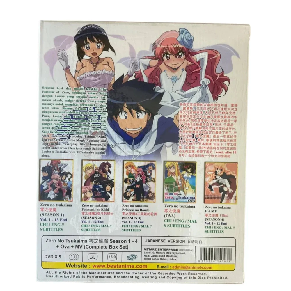 DVD Anime Zero no Tsukaima Season 1-4 + OVA + MV ~ English Subtitle All Region Synopsis: Louise Françoise Le Blanc de La Vallière is a self-absorbed mage in a world of wands, cloaks, and royalty. Although she studies at Tristain Academy, a prestigious school for magicians, she has a major problem: Louise is unable to cast magic properly, earning her the nickname of "Louise the Zero" from her classmates. When the first year students are required to perform a summoning ritual, Louise's summoning results in a catastrophic explosion! Everyone deems this to be yet another failure, but when the smoke clears, a boy named Saito Hiraga appears. Now Louise's familiar, Saito is treated as a slave, forced to clean her clothes and eat off the ground. But when an unfamiliar brand is found etched on Saito's hand from the summoning ritual, it is believed to be the mark of a powerful familiar named Gandalfr. Wild, adventurous, and explosive, Zero no Tsukaima follows Saito as he comes to terms with his new life and as Louise proves that there is more to her than her nickname suggests. Features and further details TITLE : ZERO NO TSUKAIMA SEASON 1-4 - COMPLETE TV SERIES The Familiar of Zero ゼロの使い魔 Details: Condition: NEW, Original & Licensed Item Format: ALL Region Language: Japanese Subtitle: English / Chinese / Malay Number of Episodes: Season 1 - 4, + OVA, + MV Number of Discs: 5 Weight : 280g Genres: Action, Adventure, Comedy, Fantasy, Romance, Ecchi Themes: Harem, Isekai, School Contact us We can be contacted at any time through eBay messages if you have any questions, comments or product requests. We will respond to you within 24 hours and do our best to help you out! We encourage our customers to contact us with any questions or concerns! We'd like to be sure you are completely satisfied with your purchase. Payment We accept payment via eBay - managed payment Shipping We are using standard international shipping. Handling time is 1-3 business working days. Your goods will be shipped with valid tracking number. All products is packed , layered with bubble wrap to reduce damages during shipment delivery. Estimate delivery is between 11 to 23 business working days. We also provide express shipping as an option. Estimated delivery is between 5 to 8 business days. **Rest assured we will ensure your package arrives as soon as possible. However, the delivery may be delayed due to some unforeseen circumstances which is out of our control, such as bad weather, high postal traffic and the performance of shipping companies. Return If you have any problem with the order, do contact us via eBay message, we will be glad to assist you and resolve your problems as soon as possible. Items can be returned within 30 days in good condition. Note: Import duties, taxes and additional charges are not included in item price or shipping charges. Please be aware these custom import duties and taxes are buyer's responsibility. Free eBay listing template designed by © dewiso.com .