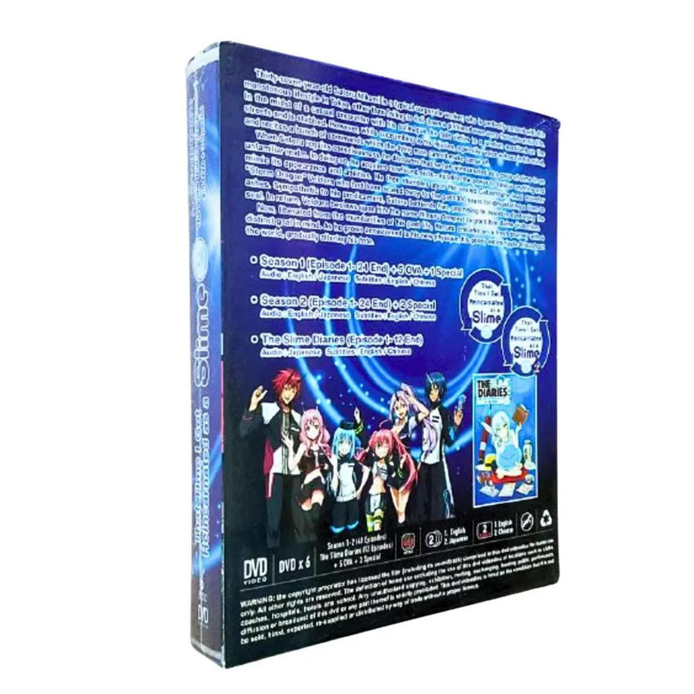 DVD That Time I Got Reincarnated As A Slime/ Tensei shitara Slime Datta Ken Season 1&2 + Diaries + 5 OVA + 3 Special ~ English Dubbed All Region Synopsis: Thirty-seven-year-old Satoru Mikami is a typical corporate worker, who is perfectly content with his monotonous lifestyle in Tokyo, other than failing to nail down a girlfriend even once throughout his life. In the midst of a casual encounter with his colleague, he falls victim to a random assailant on the streets and is stabbed. However, while succumbing to his injuries, a peculiar voice echoes in his mind, and recites a bunch of commands which the dying man cannot make sense of. When Satoru regains consciousness, he discovers that he has reincarnated as a goop of slime in an unfamiliar realm. In doing so, he acquires newfound skills—notably, the power to devour anything and mimic its appearance and abilities. He then stumbles upon the sealed Catastrophe-level monster "Storm Dragon" Veldora who had been sealed away for the past 300 years for devastating a town to ashes. Sympathetic to his predicament, Satoru befriends him, promising to assist in destroying the seal. In return, Veldora bestows upon him the name Rimuru Tempest to grant him divine protection. Now, liberated from the mundanities of his past life, Rimuru embarks on a fresh journey with a distinct goal in mind. As he grows accustomed to his new physique, his gooey antics ripple throughout the world, gradually altering his fate. Features and further details TITLE: That Time I Got Reincarnated As a Slime [Season 1+2+Slime Diaries+ 5OVA + 3 Special] Tensei shitara Slime Datta Ken 転生したらスライムだった件 Description : No of Disc : 6 Discs Version : English / Japanese Subtitles : English / Chinese Format : DVD / NTSC & All Region Code (16:9) Weight : 270g Genres: Action , Adventure , Comedy , Fantasy Themes: Isekai , Reincarnation Contact us We can be contacted at any time through eBay messages if you have any questions, comments or product requests. We will respond to you within 24 hours and do our best to help you out! We encourage our customers to contact us with any questions or concerns! We'd like to be sure you are completely satisfied with your purchase. Payment We accept payment via eBay - managed payment Shipping We are using standard international shipping. Handling time is 1-3 business working days. Your goods will be shipped with valid tracking number. All products is packed , layered with bubble wrap to reduce damages during shipment delivery. Estimate delivery is between 11 to 23 business working days. We also provide express shipping as an option. Estimated delivery is between 5 to 8 business days. **Rest assured we will ensure your package arrives as soon as possible. However, the delivery may be delayed due to some unforeseen circumstances which is out of our control, such as bad weather, high postal traffic and the performance of shipping companies. Return If you have any problem with the order, do contact us via eBay message, we will be glad to assist you and resolve your problems as soon as possible. Items can be returned within 30 days in good condition. Note: Import duties, taxes and additional charges are not included in item price or shipping charges. Please be aware these custom import duties and taxes are buyer's responsibility. Free eBay listing template designed by © dewiso.com .