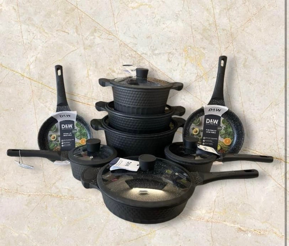 D&W Deane & White Cookware Collection Set 14pc Color Black Casserole Pan Set
