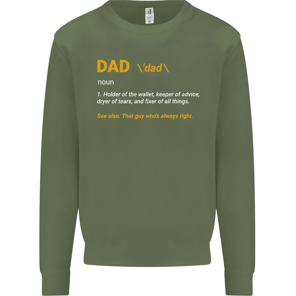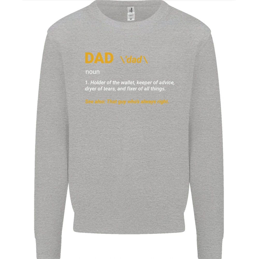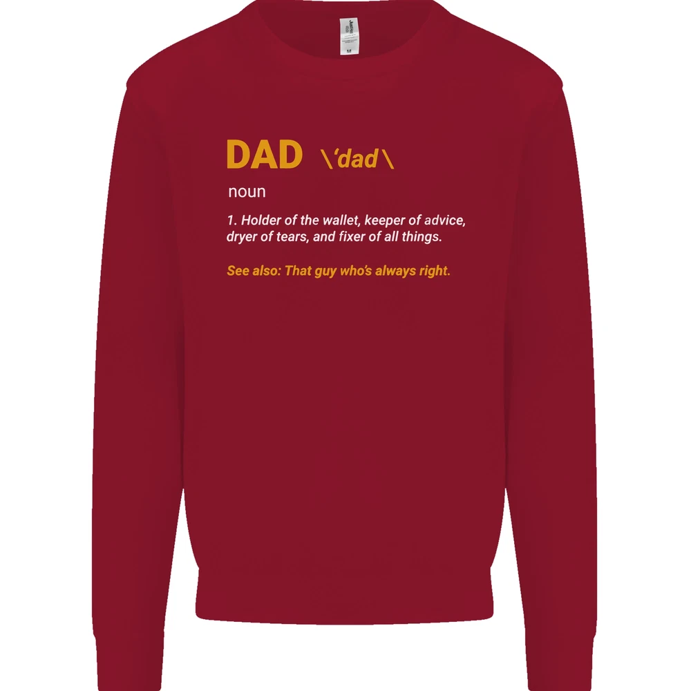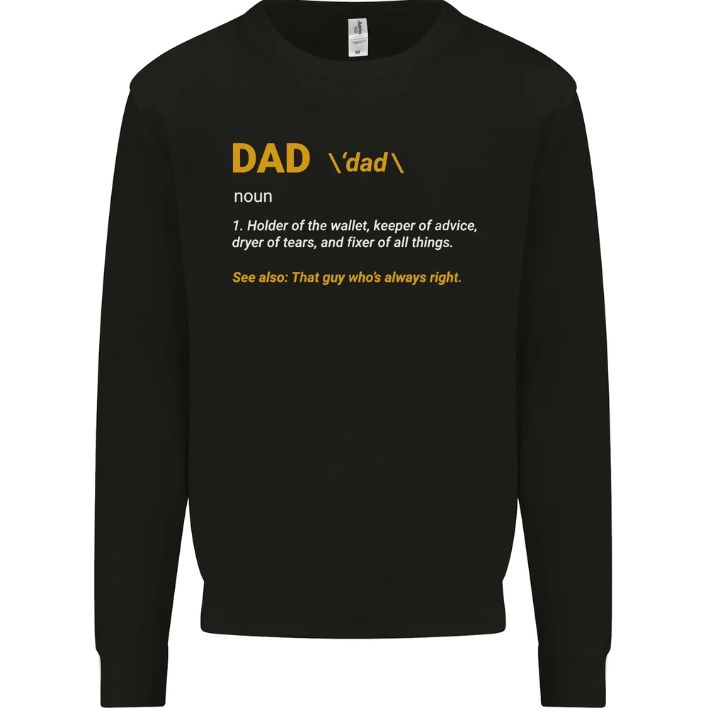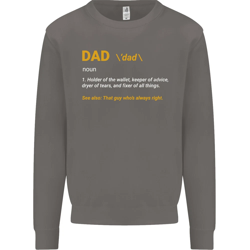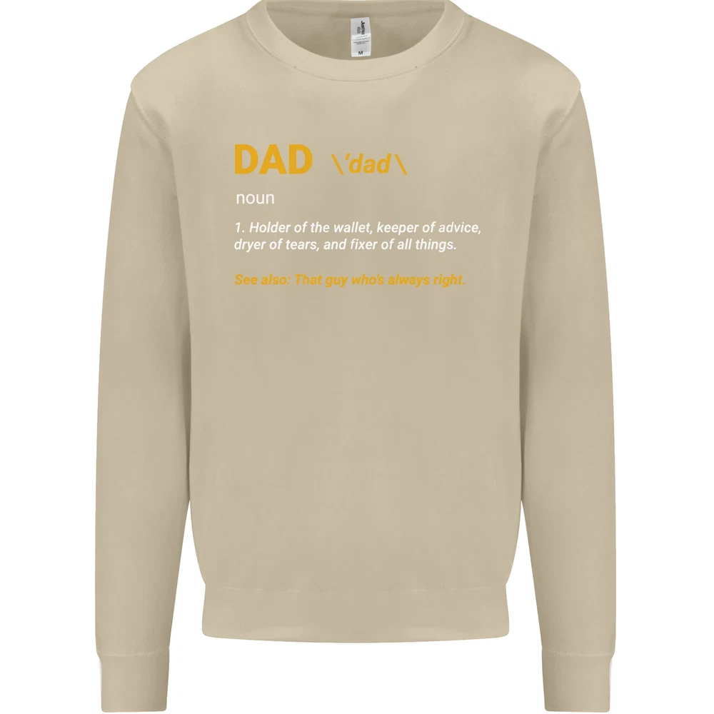 Dad Definition Funny Fathers Day Mens Sweatshirt Jumper Sizes: S 36" M 40" L 44" XL 48" 2XL 52" 3XL 56" 4XL 60" 5XL 64" Professionally printed onto an adults AWDis Sweatshirt (Sweat) JH030N 280gsm Unisex Twin needle stitching detailing Ribbed cuff and hem Soft cotton faced fabric creates ideal printing surface Printed with eco-friendly inks that are safe to the skin and children Worldwide Responsible Accredited Production (WRAP) certified production Training shoe with low-to-the-ground feel. Upper: Welded-TPU support overlays in the heel, toe cap and quarter. Dual mesh provides closed mesh in the lower quarter and breathable mesh throughout. Texture screened toe cap for protection. Description & Size Chart Adults AWDis Sweatshirt (Sweat) JH030 280gsm Unisex Twin needle stitching detailing Ribbed cuff and hem Soft cotton faced fabric creates ideal printing surface Worldwide Responsible Accredited Production (WRAP) certified production Printed with eco-friendly ink, which are safe to the skin and children. Alternative Styles This design (where appropriate), and many more like it, are available on the following styles: Best Selling Collections On the Darkside Birthdays Pets \ Animals Gym & Fitness Father's Day Sport Funny Biker Special Occasions Martial Arts LGBT Christmas Shipping All orders are shipped within one working day. Due to circumstances out or our control, or busy times of the year, this could be extended to two working days. Returns Returns are accepted within 60 days of delivery providing that the item is returned in the original condition and all tags are intact (where applicable) and has not been worn. Please ensure that the item is returned clean and free of pet hair. To return an item please use eBay's return system, which can be located by finding your order in your account and selecting the return option. eBay integration by