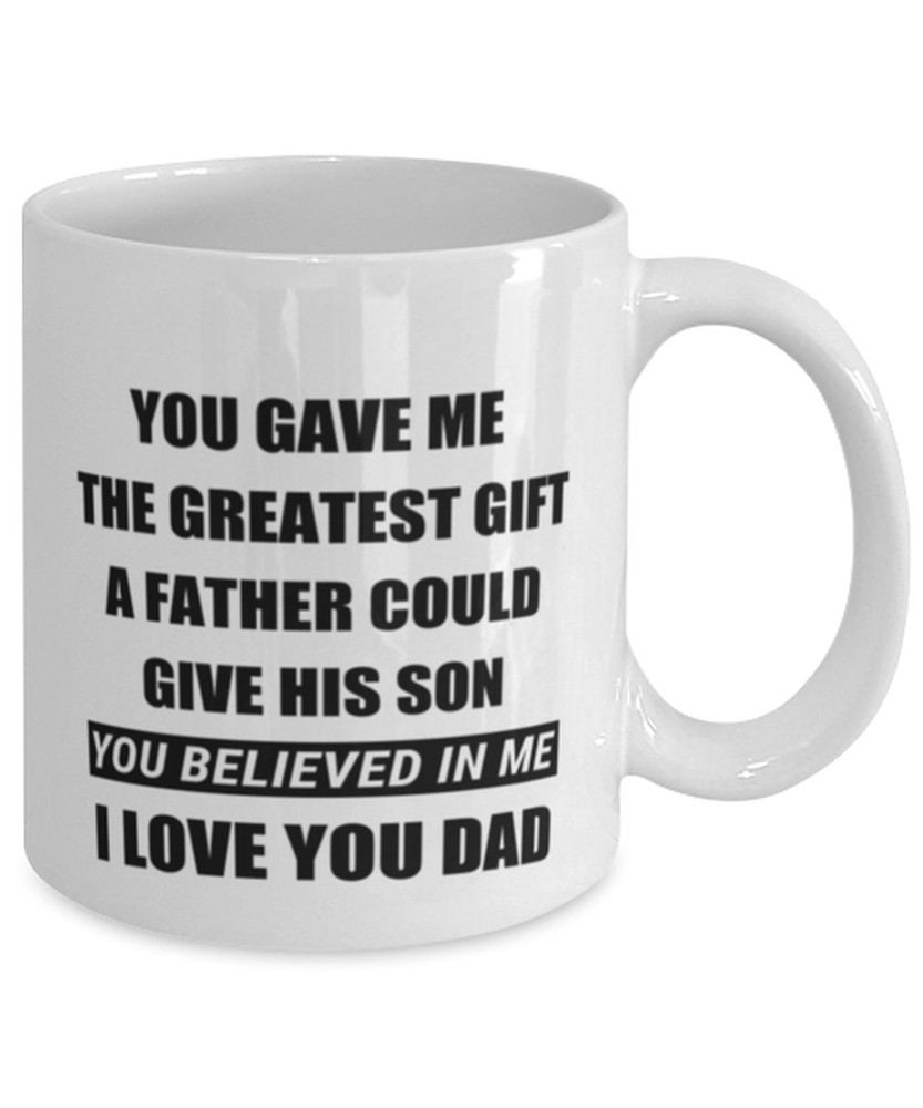 Dad Mug Believed In Me Son Fathers Day Mug For Dad Son To Dad Gift Dad Mug Product Details.. This high quality 11oz. ceramic white mug has a premium hard coat that provides crisp and vibrant color reproduction sure to last for years. Perfect for all hot & cold beverages. The highest quality printing possible is used. It will never fade no matter how many times you wash it. Material: 100% Ceramic. Print both sides. Dishwasher and Microwave Safe. High Gloss + Premium White Finish. Printed in the U.S.A. Personalized & Custom. We support personalized and custom mug to add custom, when placing an order, you can add notes to the "order note" in shipping address section. Also you can contact us directly via message. Shipping Info. Ready to ship in 1 to 2 business days, All products are made-to-order and proudly printed in the United States. Shipped by USPS and DHL, You will receive your order in 5-7 days. Replace & Refund. All products are defective during shipping broken, chipped will be replaced free of charge. You are not satisfied with the product, we will refund 100% money to you. If any other issues arise, please do not hesitate to message, we would be more than happy to assist you.