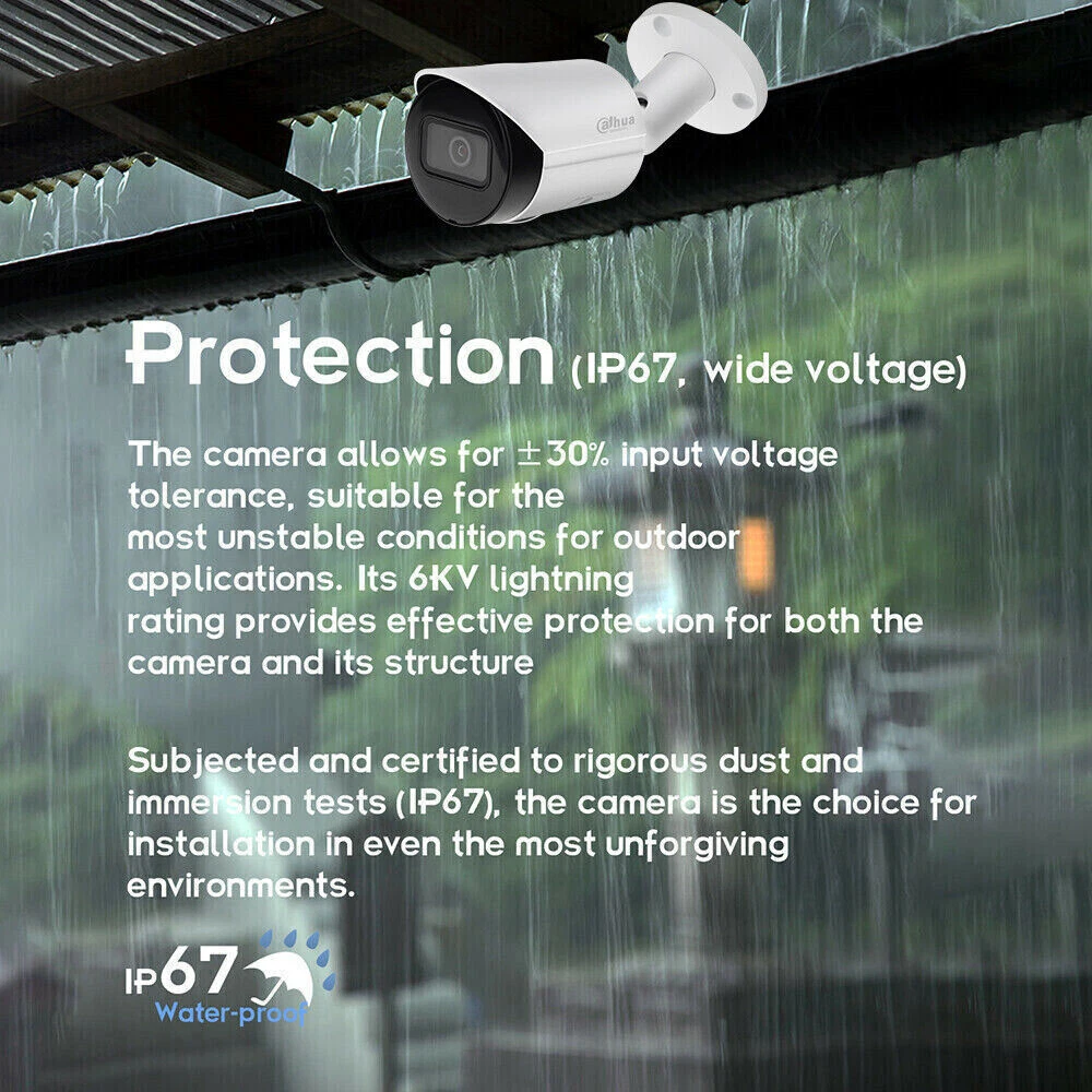 Type: Bullet Features: 1/3” CMOS image sensor, 12V DC/PoE power supply IP67 protection, Built-in IR LED, H.265 codec, high compression ration, high image definition, low illuminance, Outdoor/Weatherproof, ultra-low bit rate, Waterproof Power: 12V DC Brand: Dahua Operating Sound Rating: N/A Compatible Brand: Dahua Battery Included: No MPN: Does not apply Color Mode: Color Day, B&W Night Smart Home Compatibility: Dahua DMSS APP Surveillance Technology: IP/Network Location: Indoor/Outdoor Connectivity: Wired Maximum Resolution: 2688 (H) × 1520 (V) Smart Home Protocol: Ethernet Storage Capacity: Supports max. 256 GB Micro SD card Number of Cameras Included: 1 Model: IPC-HFW2431S-S-S2