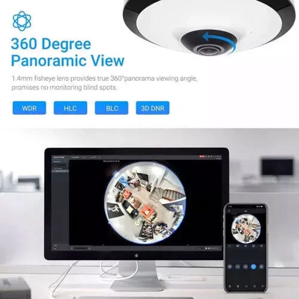 Dahua Heat Map 5MP IVS WizMind IR Fisheye POE IP Camera Mic 1.4MM IPC-EW5541-AS