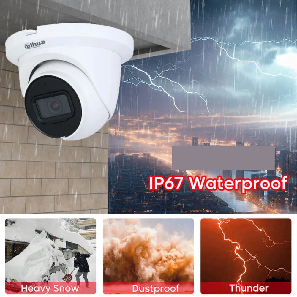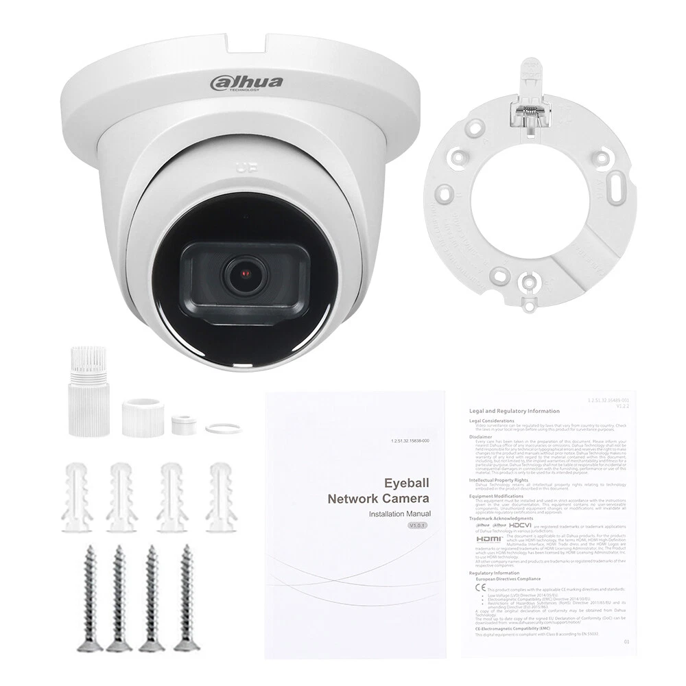 Product Description 8MP IR Fixed-focal Eyeball WizSense Network Camera > 8-MP 1/2.7" CMOS image sensor, low luminance, and high definition image. > Outputs max. 8 MP (3840 × 2160) 20 fps, and supports 2688 × 1520 (2688 × 1520) 25/30 fps. > H.265 codec, high compression rate, ultra-low bit rate. > Built-in IR LED, and the max. illumination distance is 30 m. > ROI, SMART H.264+/H.265+, flexible coding, applicable to various bandwidth and storage environments. > Rotation mode, WDR, 3D NR, HLC, BLC, digital watermarking, applicable to various monitoring scenes. > Intelligent monitoring: Intrusion, tripwire (the two functions support the classification and accurate detection of vehicle and human). > Abnormality detection: Motion detection, video tampering, audio detection, no SD card, SD card full, SD card error, network disconnection, IP conflict, illegal access, and voltage detection. > Supports max. 256 G Micro SD card; built in MIC. > 12 VDC/PoE power supply. > IP67 protection. > SMD Plus. Specifications: Camera Image Sensor 1/2.7" CMOS Max. Resolution 3840 (H) × 2160 (V) ROM 128 MB RAM 256 MB Scanning System Progressive Electronic Shutter Speed Auto/Manual 1/3 s–1/100,000 s Min. Illumination 0.009 lux F2.0 (Color, 30 IRE) 0.0009 lux F2.0 (B/W, 30 IRE) 0 lux (Illuminator on) S/N Ratio >56 dB Illumination Distance 30 m (98.43 ft) (IR) Illuminator On/Off Control Auto; Manual Illuminator Number 1 (IR LED) Pan/Tilt/Rotation Range Pan: 0°–360° Tilt: 0°–78° Rotation: 0°–360° Lens Lens Type Fixed-focal Lens Mount M12 Focal Length 2.8 mm;3.6 mm Max. Aperture F2.0 Field of View 2.8 mm: H: 106°; V: 56°; D: 125° 3.6 mm: H: 88°; V: 46°; D: 104° Iris Control Fixed Close Focus Distance 2.8 mm: 1.3 m (4.27 ft) 3.6 mm: 1.9 m (6.23 ft ) DORI Distance Lens Detect Observe Recognize Identify 2.8 mm 88.0 m (288.71 ft) 35.2 m (115.49 ft) 17.6 m (57.74 ft) 8.8 m (28.87 ft) 3.6 mm 106.7 m (350.07 ft) 42.7 m (140.09 ft) 21.3 m (69.88 ft) 10.7 m (35.10 ft) DORI (Detect, Observe, Recognize, Identify) is a standard system (EN-62676-4) for defining the ability of a person viewing the video to distinguish persons or objects within a covered area. The numbers in this table do not reflect intelligent function distances. For intelligent function distances, refer to installation and commissioning manual/project design tool. Intelligence IVS (Perimeter Protection) Intrusion, tripwire (the two functions support the classification and accurate detection of vehicle and human) Smart Search Work together with Smart NVR to perform refine intelligent search, event extraction and merging to event videos Video Video Compression H.265; H.264; H.264H; H.264B; MJPEG (Only supported by the sub stream) Smart Codec Smart H.265+; Smart H.264+ Video Frame Rate Main stream: 3840 × 2160 (1–20 fps)/2688 × 1520 (1–25/30 fps) sub stream: 704 × 576 (1–25 fps)/704 × 480 (1–30 fps) *The values above are the max. frame rates of each stream; for multiple streams, the values will be subjected to the total encoding capacity. Stream Capability 2 streams Resolution 3840 × 2160 (3840 × 2160); 3072 × 2048 (3072 × 2048); 3072 ×1728 (3072 × 1728); 2880 × 1620 (2880 × 1620); 2688 × 1520 (2688 × 1520); 3M (2048 × 1536); 2304 × 1296 (2304 × 1296); 1080p (1920 × 1080); 1.3M (1280 × 960); 720p (1280 × 720); D1 (704 × 576/704 × 480); VGA (640 × 480); CIF (352 × 288/352 × 240) Bit Rate Control CBR/VBR Video Bit Rate H.264: 32 kbps–8192 kbps H.265: 12 kbps–8192 kbps Day/Night Auto(ICR)/Color/B/W BLC Yes HLC Yes WDR 120 dB White Balance Auto; natural; street lamp; outdoor; manual; regional custom Gain Control Auto; Manual Noise Reduction 3D NR Motion Detection OFF/ON (4 areas, rectangular) Region of Interest (RoI) Yes (4 areas) Smart Illumination Yes Image Rotation 0°/90°/180°/270° (Support 90°/270° with 2688 × 1520 resolution and lower) Mirror Yes Privacy Masking 4 areas Audio Built-in MIC Yes Audio Compression G.711a; G.711Mu; PCM; G.726 Alarm Alarm Event No SD card; SD card full; SD card error; network disconnection; IP conflict; illegal access; motion detection; video tampering; tripwire; intrusion; audio detection; voltage detection; SMD; security exception Network Network Port RJ-45 (10/100 Base-T) SDK and API Yes Network Protocol IPv4; IPv6; HTTP; TCP; UDP; ARP; RTP; RTSP; RTCP; RTMP; SMTP; FTP; SFTP; DHCP; DNS; DDNS; QoS; UPnP; NTP; Multicast; ICMP; IGMP; NFS; PPPoE; Boujour Interoperability ONVIF (Profile S/Profile G/Profile T); CGI; P2P; Milestone User/Host 20 (Total bandwidth: 48 M) Storage FTP; SFTP; Micro SD card (support max. 256 GB); NAS Browser IE Chrome Firefox Management Software Smart PSS; DSS; DMSS Mobile Client iOS; Android Cyber Security Configuration encryption; Trusted execution; Digest; Security logs; WSSE; Account lockout; syslog; Video encryption; 802.1x; IP/MAC filtering; HTTPS; Trusted upgrade; Trusted boot; Firmware encryption; Generation and importing of X.509 certification Certification Certifications CE-LVD: EN62368-1; CE-EMC: Electromagnetic Compatibility Directive 2014/30/EU; FCC: 47 CFR FCC Part 15, Subpart B; UL/CUL: UL62368-1 & CAN/CSA C22.2 No. 62368-1-14 Power Power Supply 12 VDC/PoE (802.3af) Power Consumption Basic: 2.7 W (12 VDC); 3.4 W (PoE) Max. (H.265+ max. resolution + max. stream+ WDR + IR intensity + IVS): 4.5 W (12 VDC); 5.4 W (PoE) Environment Operating Temperature –40 °C to +55 °C (–40 °F to +131 °F) Operating Humidity ≤95% Storage Temperature –40 °C to +60 °C (–40 °F to +140 °F) Storage Humidity ≤95% Protection IP67 Structure Casing Material Inner core: Metal Cover: Metal Decoration ring: Plastic Quick install mounting plate: Metal Product Dimensions 99.1 mm × Φ121.9 mm (3.90"× Φ4.80") Net Weight 0.48 kg (1.06 lb) Gross Weight 0.68 kg (1.50 lb) Shipping & Handling: Warranty & Return Policy: Feedback & About Us: About Customs duty/Tax: 1. Item will be shipped out within 5 business days after the payment. Please check and mak