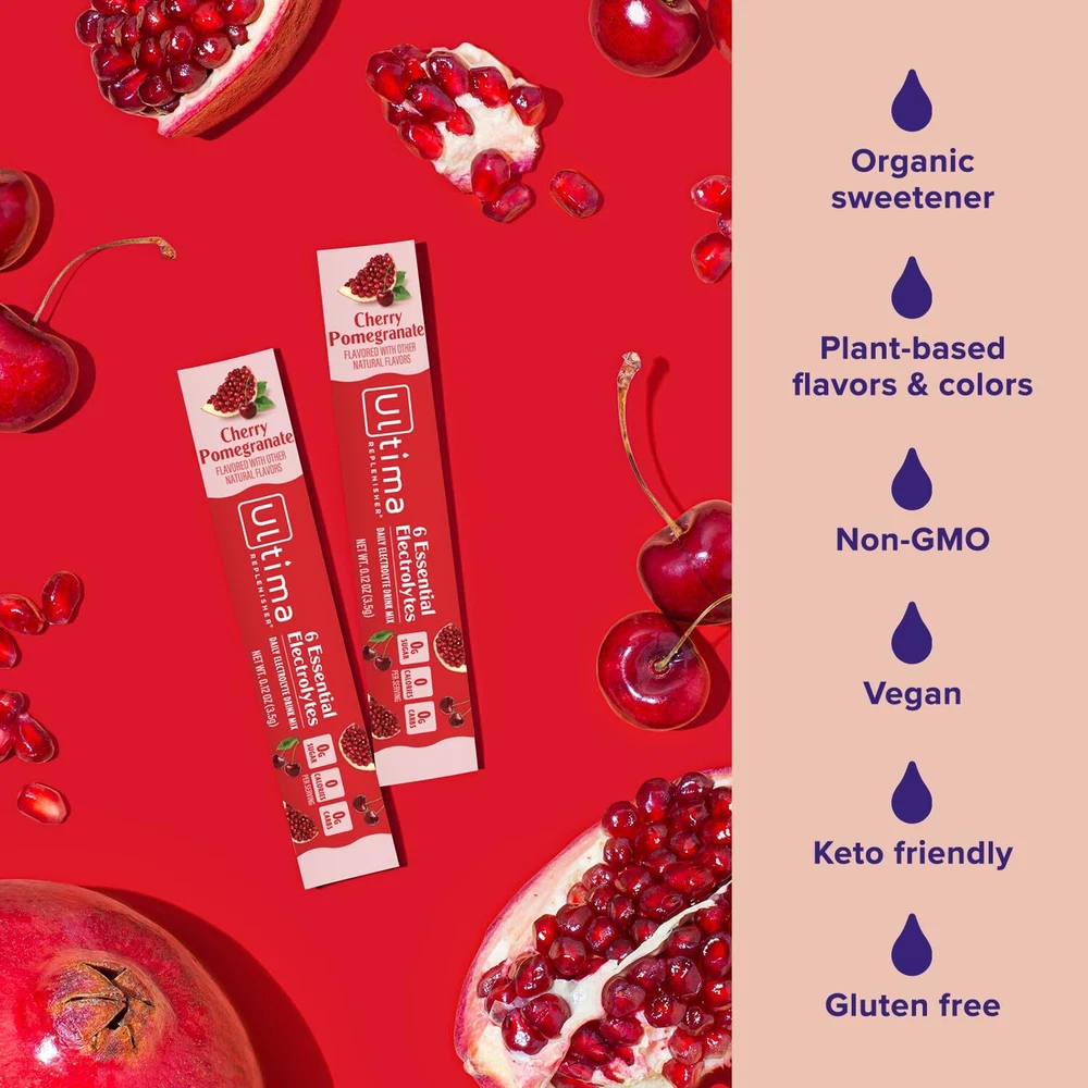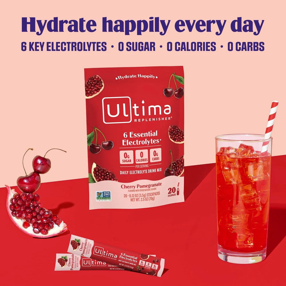 Daily Electrolyte Drink Mix – Cherry Pomegranate, 20 Stickpacks – Hydration Packets with 6 Electrolytes & Minerals – Keto Friendly, Vegan, Non-GMO & Sugar-Free Electrolyte Powder Hydrate happily: Ultima electrolytes powder delivers everyday hydration packed with 6 key electrolytes, vitamin C, zinc and delicious plant-based flavors; Ultima electrolytes provide enhanced hydration with 0 sugar, calories or carbs Naturally delicious: Electrolyte drink mix made with 6 key electrolytes - magnesium, calcium, potassium, chloride, phosphorus and sodium, as well as vitamin C and zinc; naturally sweetened with organic stevia leaf and infused with real fruit flavors What’s inside: Our daily electrolyte drink mix replenishes your electrolyte levels without the sugar, calories or artificial sweeteners; sugar free, gluten free, vegan, keto friendly and Non-GMO Take it with you: This 20-serving pack of our electrolyte powder packets is perfect for on the go and exploring different flavors; simply add 1 stickpack to 16 ounces of water and shake or stir well, then add ice if you’d like it cold The Ultima difference: We’ve spent over 25 years taking electrolyte hydration to a delicious new level; you deserve balanced hydration to replenish your body while you’re living your ultimate life, every day Shipping We offer FREE shipping on all orders! We ship within Three business days of payment, usually sooner. We use a selection of shipping services such as UPS, FedEx, USPS etc. We only ship to the lower 48 states, no APO/FPO addresses or PO Boxes allowed. Local pickups and combined shipping options are not provided at this time. Return You can return a product for up to 30 days from the date you purchased it. Any product you return must be in the same condition you received it and in the original packaging. Please keep the receipt. Payment We accept payment by any of the following methods: PayPal Please pay as soon as possible after winning an auction, as that will allow us to post your item to you sooner! Feedback Customer satisfaction is very important to us. If you have any problem with your order, please contact us and we will do our best to make you satisfied. Contact Us If you have any queries, please contact us via ebay. We usually respond within 24 hours on weekdays. Please visit our eBay store to check out other items for sale! Thank you for shopping at our store.