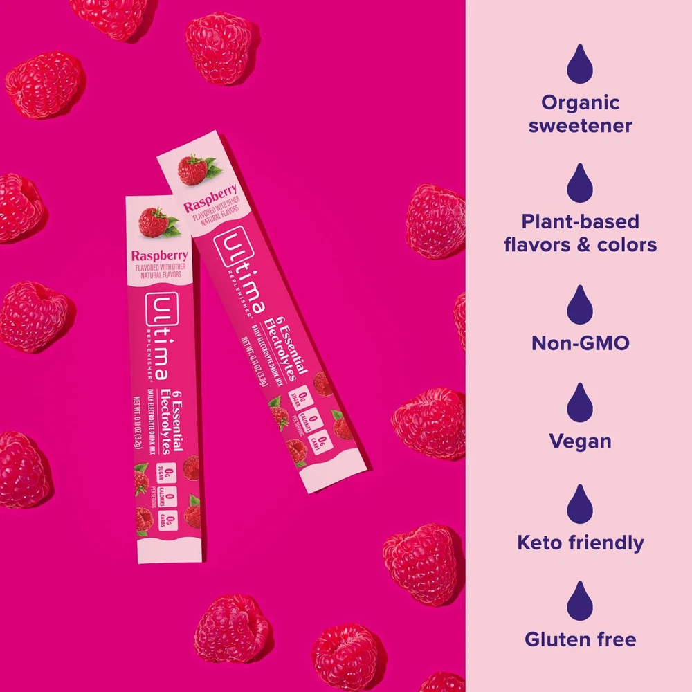 Daily Electrolyte Drink Mix – Raspberry, 20 Stickpacks – Hydration Packets with 6 Key Electrolytes & Trace Minerals – Keto Friendly, Vegan, Non-GMO & Sugar-Free Electrolyte Powder Hydrate happily: Ultima electrolytes powder delivers everyday hydration packed with 6 key electrolytes, vitamin C, zinc and delicious plant-based flavors; Ultima electrolytes provide enhanced hydration with 0 sugar, calories or carbs Naturally delicious: Electrolyte drink mix made with 6 key electrolytes - magnesium, calcium, potassium, chloride, phosphorus and sodium, as well as vitamin C and zinc; naturally sweetened with organic stevia leaf and infused with real fruit flavors What’s inside: Our daily electrolyte drink mix replenishes your electrolyte levels without the sugar, calories or artificial sweeteners; sugar free, gluten free, vegan, keto friendly and Non-GMO Take it with you: This 20-serving pack of our electrolyte powder packets is perfect for on the go and exploring different flavors; simply add 1 stickpack to 16 ounces of water and shake or stir well, then add ice if you’d like it cold The Ultima difference: We’ve spent over 25 years taking electrolyte hydration to a delicious new level; you deserve balanced hydration to replenish your body while you’re living your ultimate life, every day Shipping We offer FREE shipping on all orders! We ship within Three business days of payment, usually sooner. We use a selection of shipping services such as UPS, FedEx, USPS etc. We only ship to the lower 48 states, no APO/FPO addresses or PO Boxes allowed. Local pickups and combined shipping options are not provided at this time. Return You can return a product for up to 30 days from the date you purchased it. Any product you return must be in the same condition you received it and in the original packaging. Please keep the receipt. Payment We accept payment by any of the following methods: PayPal Please pay as soon as possible after winning an auction, as that will allow us to post your item to you sooner! Feedback Customer satisfaction is very important to us. If you have any problem with your order, please contact us and we will do our best to make you satisfied. Contact Us If you have any queries, please contact us via ebay. We usually respond within 24 hours on weekdays. Please visit our eBay store to check out other items for sale! Thank you for shopping at our store.
