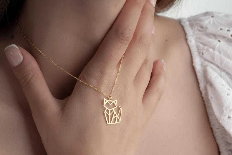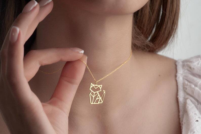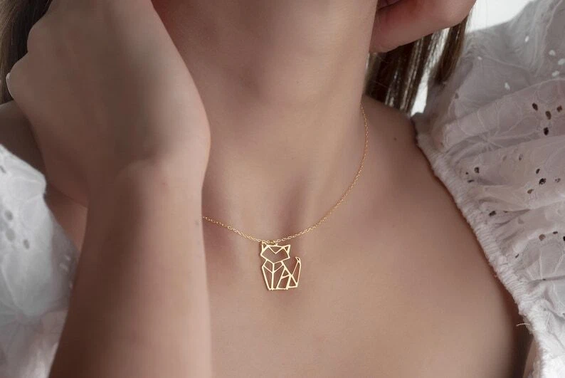 Dainty Cat Necklace 925 Sterling Silver, Cat Lover Gift, Origami Jewelry, Animal Pendant, Cat Loss Gift, Kitten Necklace, Girlfriend Gift Highlights Made by ProSilverJewelry Materials: Sterling silver Style: Minimalist Can be personalized Recycled Made to Order Dainty Cat Necklace, Cat Lover Gift, Origami Jewelry, Cute Animal Pendant, Cat Loss Gift, Kitten Necklace, Girlfriend Gift, Kitty Necklace TO OUR VALUED CUSTOMERS ! Please take a look at our special catalog that we have prepared for you ! ✔️ All products in our unique store are personalized. ( You can find our font list in the images ) D E T A I L S ✔️A lifetime silver CLEANING CLOTH is given as a GIFT along with the 925 Sterling Silver Necklace! ✔️ • Made to Order. • Handmade with Sterling %100 925K Sterling Solid Silver. • Choice of Gold Color: Gold, Rose Gold, Silver • Length: 14”, 16”, 18”, 20”, 22” • Ready to Ship in 1-3 Business Days • Free returns within 14 days from the order date. ✔️ 24/7 Friendly Customer Service, contact us for any questions ! :) A B O U T ∙ U S • All personalization is done by hand. Because it's better that way. • 100% Ethically Sourced raw materials. • Our lovely packaging is made with love and passion. • Handcrafted by our trusted craftsmen with care. G I F T ∙ T I M E We love gifts but then who doesn’t? If you want to gift your loved one as well, don’t forget to send us a note. Maybe a little personal note would look great, too. Let us know and we’ll pack it separately for you.