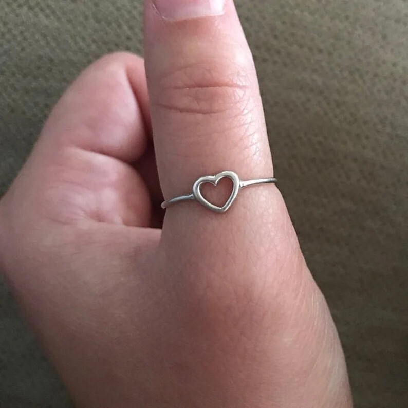 Show your love and appreciation with this elegant sterling silver heart ring, designed for women who cherish simplicity and elegance. This minimalist open heart design makes it the perfect gift for any occasion, including birthdays, anniversaries, or Mother's Day. Whether you’re celebrating a special moment or looking for a meaningful gesture, this ring is a timeless addition to any jewelry collection. Key Features: Premium Quality: Made from high-quality sterling silver for a durable, shiny finish that will last for years. Elegant Design: The dainty open heart symbolizes love and affection, making it a thoughtful gift for someone special. Minimalist Style: A sleek and simple design that is versatile enough for everyday wear or special occasions. Perfect Gift for Her: Ideal for anniversaries, birthdays, Valentine's Day, Mother’s Day, or as a promise ring to symbolize your commitment. Available in Multiple Sizes: Choose the perfect size for her finger to ensure a comfortable fit. Why You'll Love It: This charming heart ring is a perfect blend of timeless elegance and modern simplicity. Whether worn as a standalone piece or stacked with other rings, it’s sure to complement any style. Gift this beautiful ring to show someone how much you care.