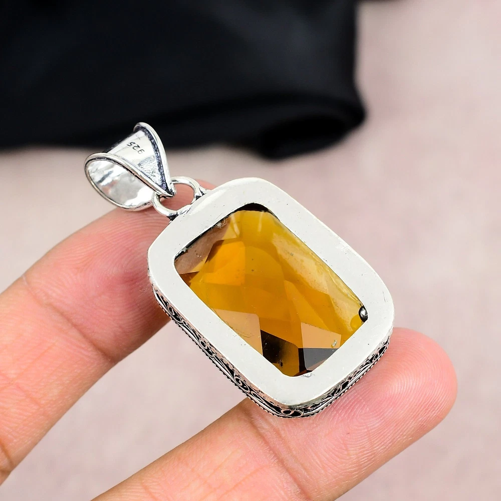 HomeDainty Citrine Gemstone Pendant in 925 Sterling Silver Handmade Jewelry Gift for Women