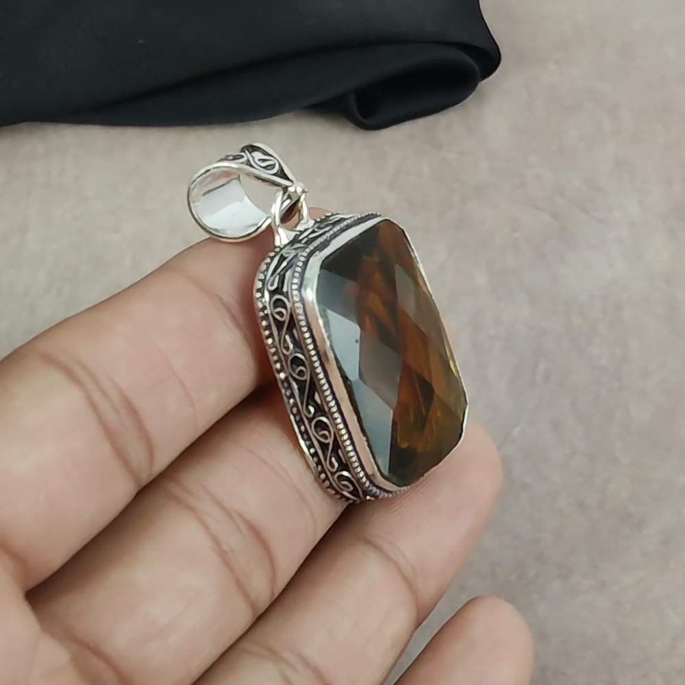 Smoky Quartz Pendant in 925 Sterling Silver Handmade Party Jewelry Gift