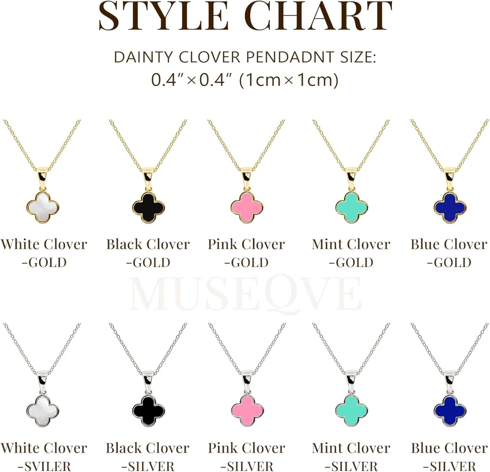Store New Arrivals Add to Favorite View Feedback Contact Fast deliveries to the customer's home Quality customer service John Make the customers happy! Four Leaf Clover Necklace for Women • Dainty Mother of Pearl White Black Onyx Pink Blue Mint Green Lucky Clover Pendant • 14K Gold Plated Jewelry Gifts [CVRN] Description Product Description Jewelry Box We carefully selected the material and gold for our products so that even packaged in our standard jewelry box, your jewelry will look high-end and luxurious. *This option is available for every customer who purchases a necklace. Rose Gift Box Our rose gift box with artificial flower lets you easily store your jewelry and allows you to cherish and remember the fond memories of this gift for a long time. Give this unique gift on a special day, to a special someone, or give it to your unique self. Make a special day even more memorable with this beautiful and classy gift box. *This option is available after selecting the ‘Rose Gift Box’ option, and Rose color will be sent randomly between pink and red. About MUSEQVE We understand that each piece has a special and important meaning to you. Therefore, all of Museqve’s jewelry is carefully crafted and individually inspected at least 3 times to ensure the best quality possible. May you always shine bright with our jewelry ! Item model number CVRN Style Jewelry Box Metal stamp 14KHGE Chain Cable Gem Type mother of pearl Color Black-Gold Material Gold Plated, Silver Plated, Stainless Steel Metal Yellow Gold Model number CVRN Length 19 inches Setting Bezel Department womens Number of stones 1 Package Dimensions 2.8 x 1.9 x 1.2 inches; 0.1 ounces Clasp Lobster ABOUT US We offer the best prices around on high quality products. Our E-store includes media such as books, movies, music and games while offering electronics, toys, sporting apparel, clothing, tools, general home, garden items and more. SHIPPING We are always working hard to ensure your package arrives as soon as possible. Please understand that some factors like weather, high postal traffic, and the performance of shipping companies are outside of our control. We offer free shipping to the lower 48 states and ship within 2 business days of payment, usually sooner. We do not accept P.O. Boxes. Please provide a physical address. For shipping outside of the continental USA, we only use eBay's Global Shipping Program. The item is shipped to KY and then sent to the rest of the world. International customers are responsible for all duties and taxes. Continue to 'check out' to calculate costs for shipping the item to your country. Messages regarding eBay's Global Shipping Program MUST be directed at eBay EXCLUSIVELY. RETURNS We offer a 30-Day Return Policy on items in which you are not completely satisfied with. You have the option of a full-refund or an exchange of the item. No returns are available on items shipped outside of the USA PAYMENT We accept PayPal. CONTACT US This page content is yet to come Please ad us to your favorite seller and visit again later Thank You CUSTOMER SATISFACTION We try our very best to make sure every customer is completely satisfied. If there's a problem, message us! We're happy to help. WE ACCEPT