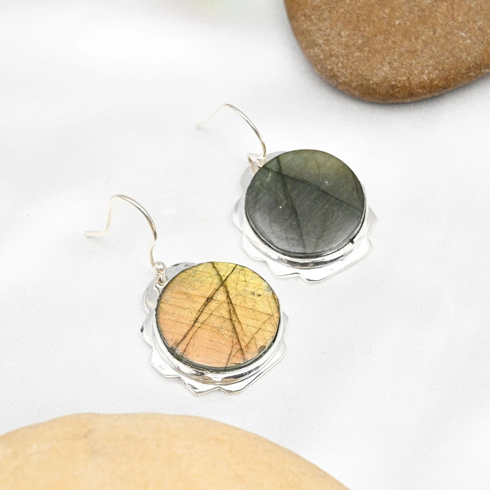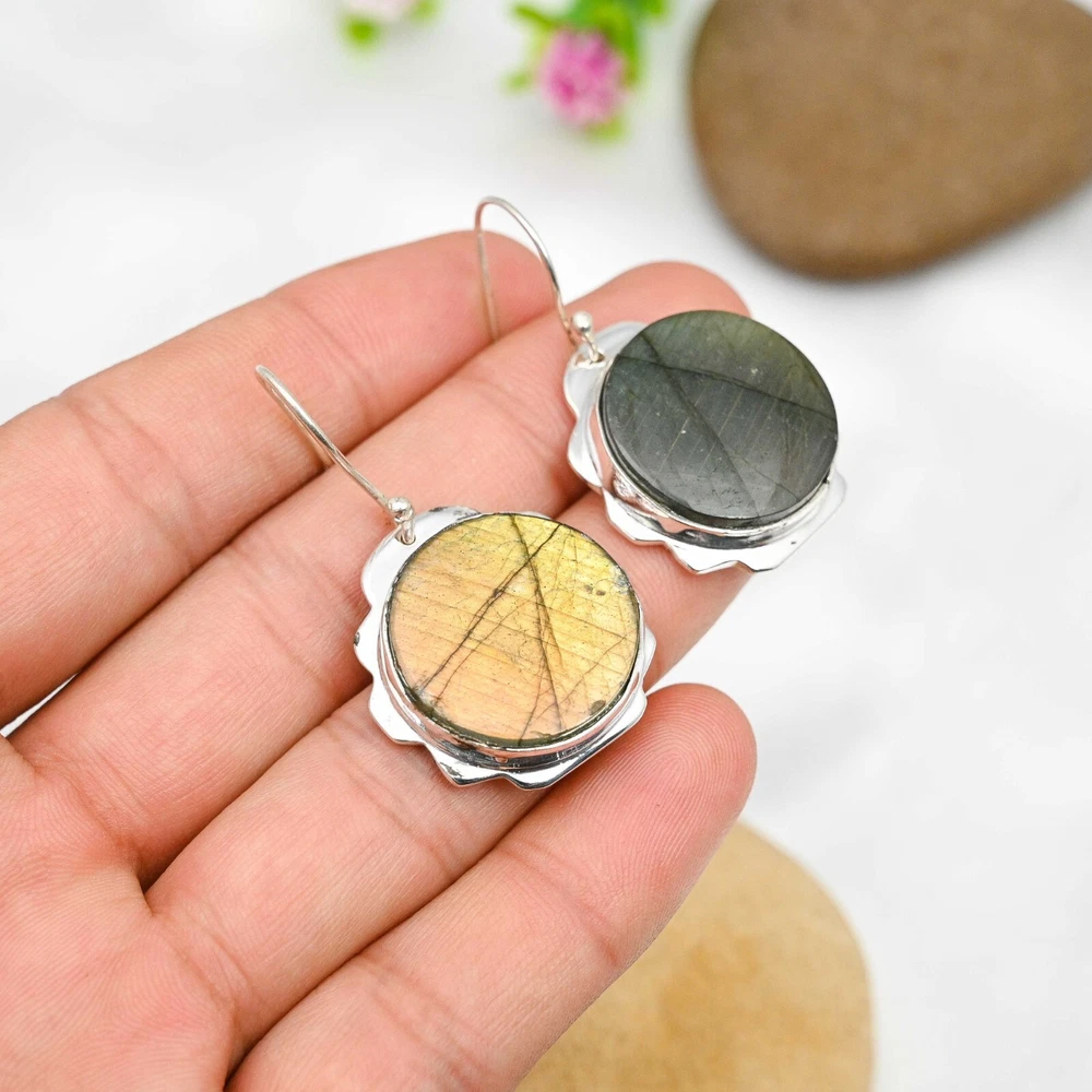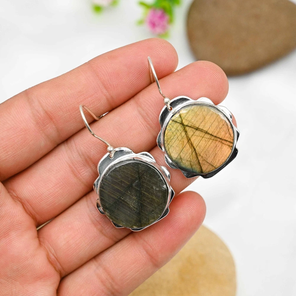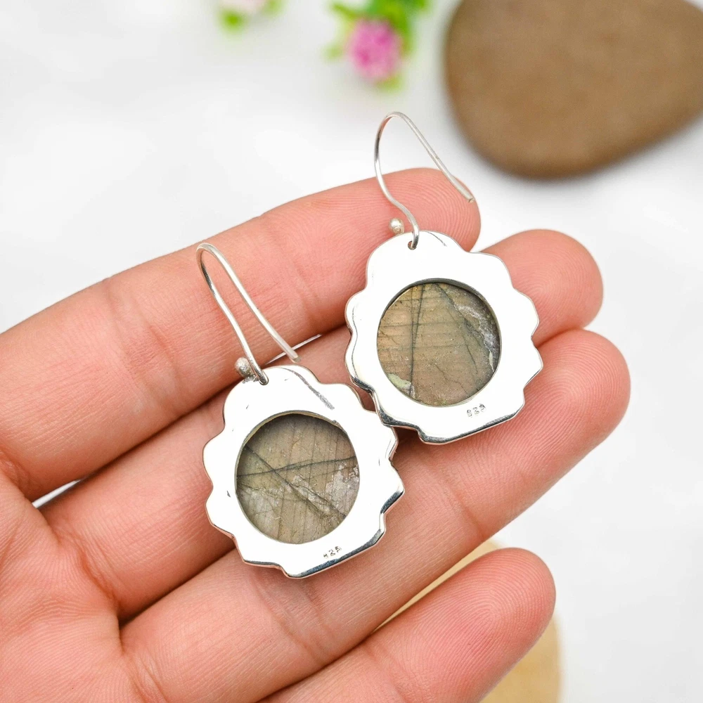 Dainty Labradorite Gemstone Earrings 925 Sterling Silver Handmade Jewelry Gift