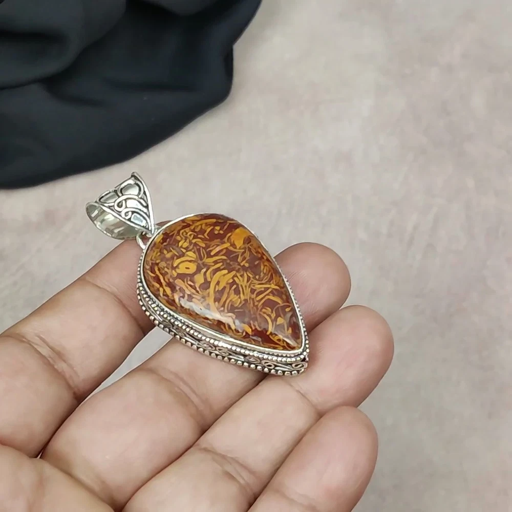 Dainty Mariam Jasper Gemstone Pendant 925 Sterling Silver Pendant Jewelry Gift