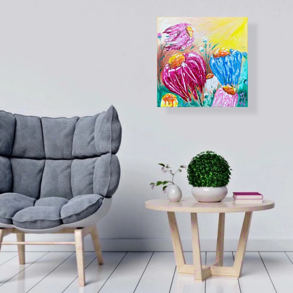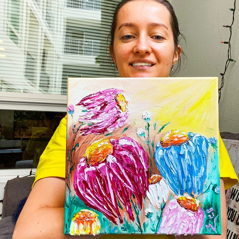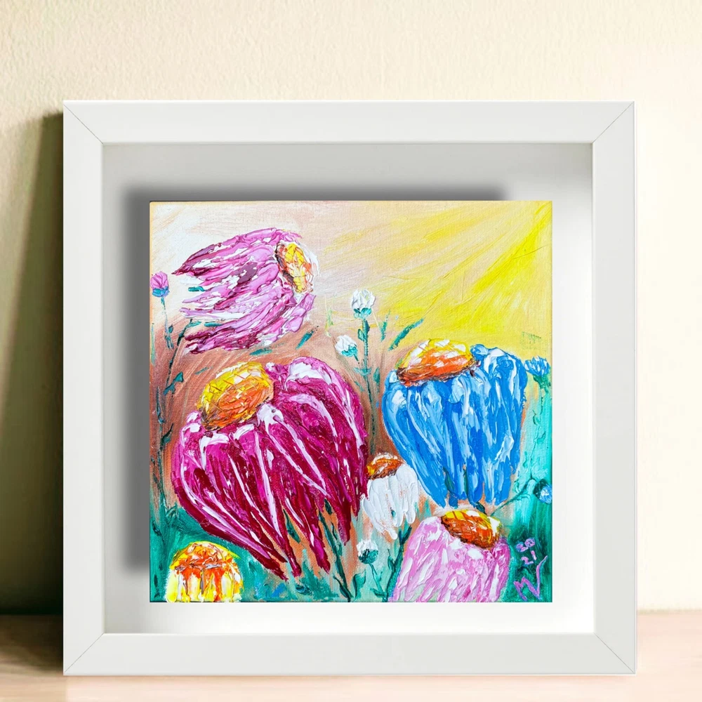 Made to Order Wall Art on Canvas Painting "Daisy" Materials: high quality oil paints, stretch canvas, palette knife Original Artwork Shipping: high-quality protective packaging with tracking number Sides are painted, ready to hang On the front and back sides of the textured wall art - the author's signature. Wrapped around wooden stretcher bars Fast Order Processing! Happy Shopping! Daisy Painting Original Art Canvas Flower Wall Art Floral Oil Artwork Impasto Painting by Artist MV Video will open in a new window Using the mobile app? Copy this link into your browser:
