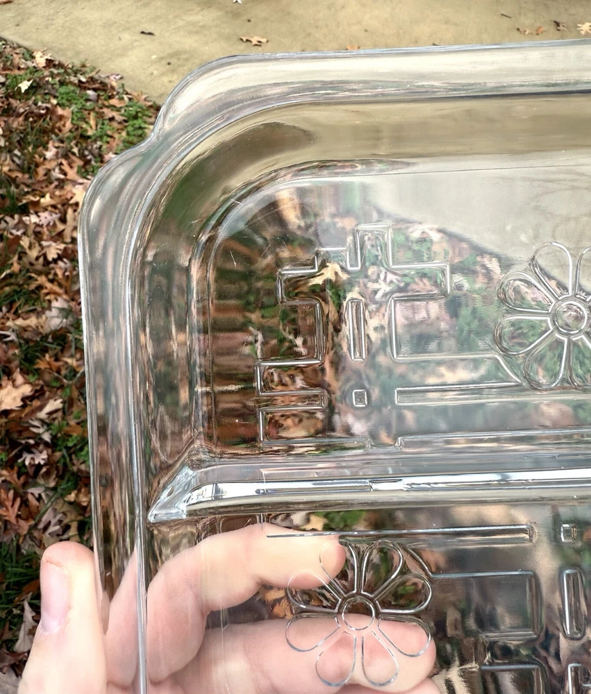 Here’s your chance to own this beautiful vintage glass tray insert that went with the (Toastmaster Daisy Hospitality set), produced by Duncan Glass circa 1939. Please note: This tray does have scratches on bottom from use it was loved in good used condition for the age. Also, no chips or cracks. Please see all photos before purchasing. Thanks for looking and supporting business. Measurements: Measures about 7x8 inches