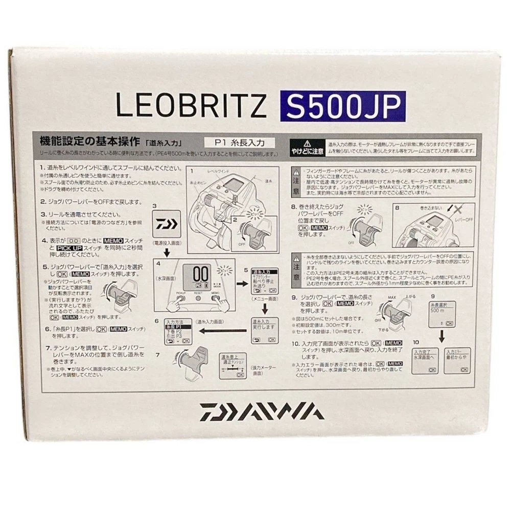 DAIWA Electric Reel 23 Leo Blitz S500JP Description About This Items 23 Leoblitz S500JP Brand: DAIWA (fishing) Reel gear ratio: 3.6 (gear ratio) Reel weight: 800.0 g Maximum drag force: 16.0 kg Maximum winding length: 55.0 cm Number of ball bearings: 8.0 Right handle/left handle: Right handle Maximum winding force: 83.0 kg Shipping We always send the item with a tracking number. So please place an order without any concern on delivery. You can always track the delivery status. Shipping is only available to the address registered in eBay. If you want us to send another address, please change your address on eBay and then place an order. Shipping is available from Monday to Friday. Weekends are not available because freight (shipping) companies are closed. We do not mark merchandise values below value or mark items as “gifts” – Japan, US and International government regulations prohibit such behavior. About Importer's Obligation Import duties, taxes, and charges are not included in the item price or shipping cost. These charges are the buyer's responsibility. Please check with your country's customs office to determine what these additional costs will be prior to bidding or buying. Thank you for your understanding.