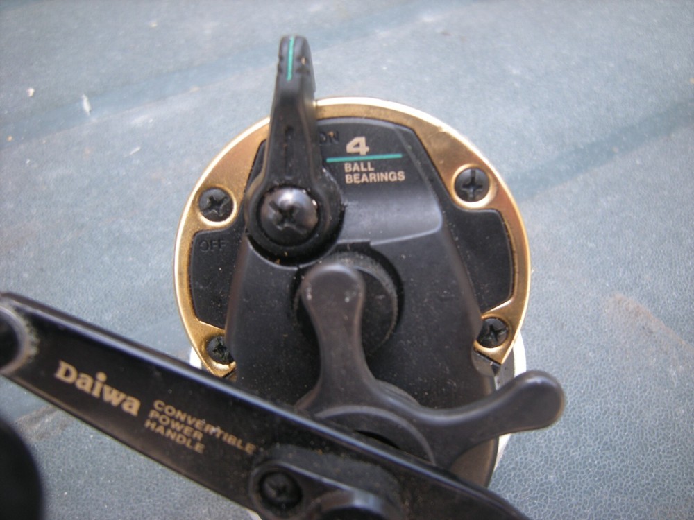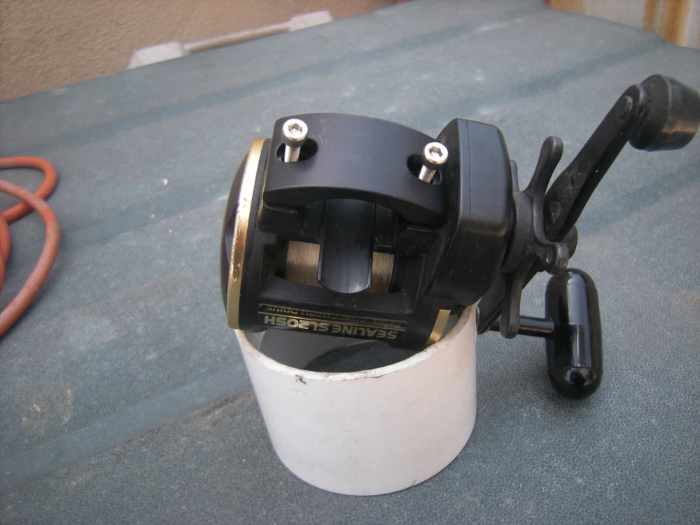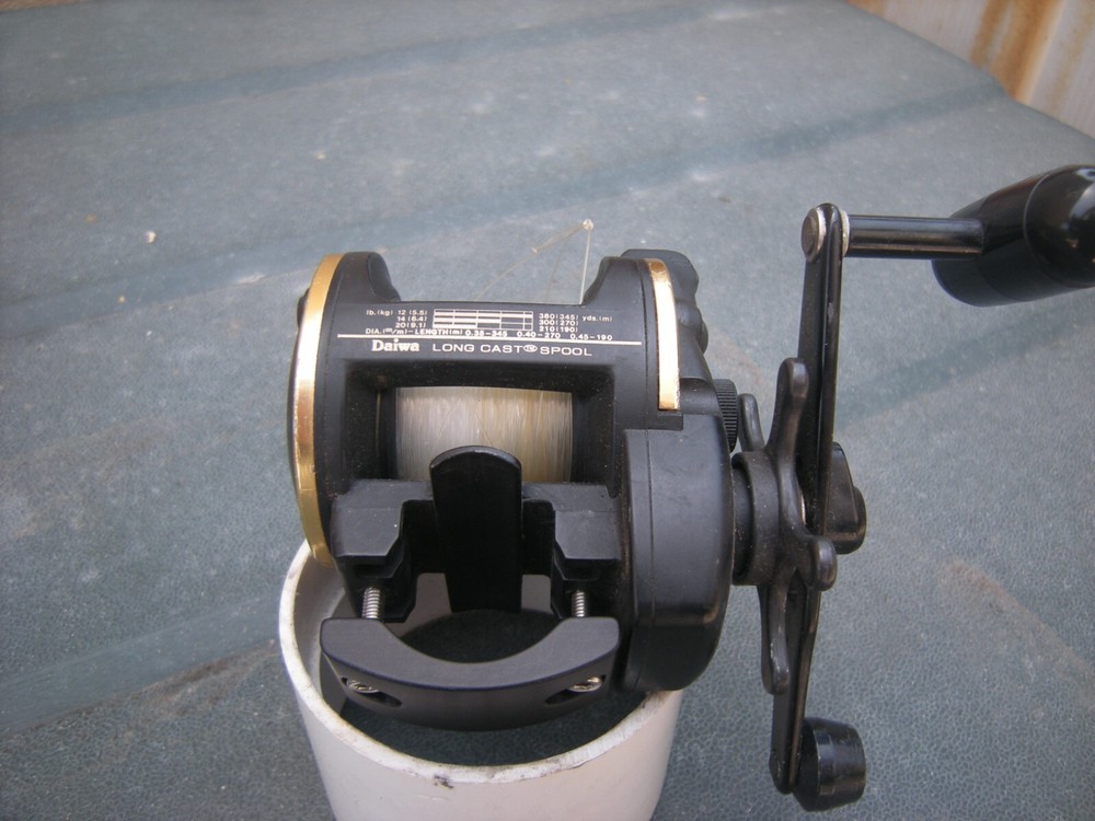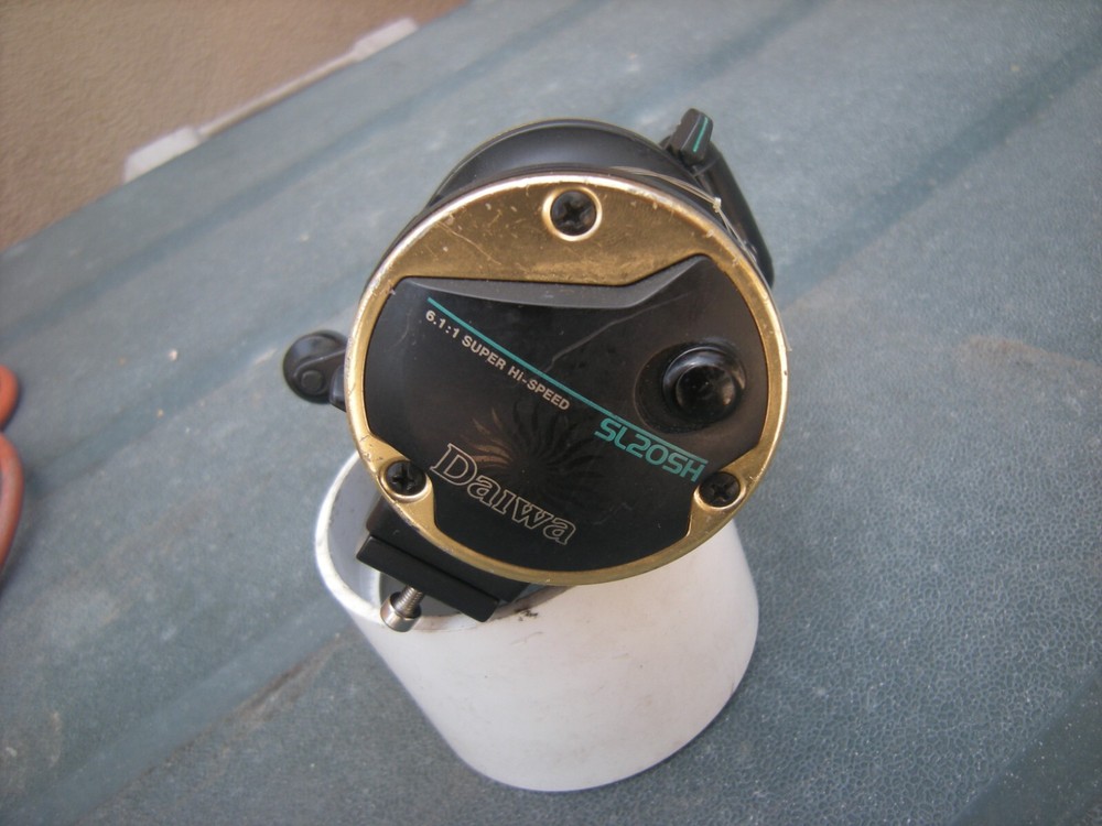 Selling a used Daiwa Sealine SL20SH fishing reel. long cast spool. Nice graphics - This reel is well functioning, cosmetically good all around. 1) Gold plated side rings look decent, left rungs has minor contact flaws. 2) Original clamp and hardware. 3) Spooled with 20# Trilene. 4) Functions like new and frame decaling looks great. This reel casts great and has a smooth drag system. Applications for surface fishing - bass, barracuda, halibut., yellowtail. Works extremely well for casting 'chovies and 'dines. Spool spins like crazy. Redeeming Features: Free-Floating Spool-Speed Shaft separates the spool from the gear train on outcast for less friction, longer casts and faster lure drop. Three CRBB Super Corrosion Resistant Ball Bearings. Massive, six-element sealed drag, ultra-smooth and consistent. Tough marine bronze and stainless steel gears. High-tensile aluminum spool, super-strong yet super light in weight. Two-position power handle, Rod clamp and 30# Trilene mono included.