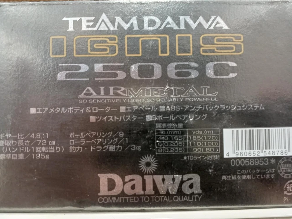 Daiwa TD Ignis 2506C Spinning Reel, Light Tackle, Used Key Features Product Description: No description available. Item Specifics: - C:Reel Type: Not specified - C:Reel Size: Not specified - C:Ball Bearings: Not specified - C:Hand Retrieve: Not specified - C:Fish Species: Not specified - C:Fishing Type: Not specified - C:Gear Ratio: Not specified - C:Drag Style: Not specified - C:Material: Not specified - C:Maximum Drag: Not specified - C:Department: Not specified - C:Line Capacity: Not specified - C:Braid Capacity: Not specified - C:Line Recovery: Not specified - C:Model: Not specified - C:Number of Pieces: Not specified - C:Color: Not specified - C:Features: Not specified - C:Country/Region of Manufacture: Not specified - C:Vintage: Not specified - C:Pre-Spooled: Not specified Specifications Brand Daiwa Country Japan Product Description 🦉PRODUCT INFORMATION 🦉 Please refer to the photos for product details. If you have any questions, feel free to contact us through eBay messages. 🦉 PAYMENTS 🦉 We accept PayPal and all major debit/credit cards. Payment must be cleared before we can process your order. Orders are typically shipped within 6 business days after payment confirmation. 🦉 SHIPPING 🦉 Packaging : All items are carefully packed using secure materials such as boxes and bubble wrap. Dispatch Time : Orders usually leave our warehouse within 6 business days of payment. Orders placed on weekends or holidays will be processed on the next business day. Tracking Information : A valid tracking number will be provided for all shipments. 🦉 International Shipping 🦉 We ship to the US, Europe, Asia, the Middle East, Australia, and Canada, including Guam and Hawaii. All international orders are shipped via Japan Post , ensuring safe and reliable delivery. 🦉 CHECKOUT 🦉 Please double-check your shipping address before completing your purchase. Note : We can only ship to the address provided during checkout and cannot make changes afterward. 🦉 CUSTOMER SERVICE 🦉 Your satisfaction is our top priority. If you have any questions or concerns, feel free to reach out to us via eBay messages. We strive to respond within 3 business days. 🦉RETURN POLICY🦉 We offer a 30-day return or exchange policy for all items. To qualify for a full refund, the item must be returned in its original condition. 🦉 CUSTOMS DUTY AND TAXES🦉 Import duties, taxes, and additional charges are not included in the item price or shipping cost. These charges are the buyer’s responsibility. Please check with your local customs office to determine the applicable costs before purchasing. We cannot accommodate requests for undervalued declarations or marking items as gifts. If you have any further questions, please don’t hesitate to ask. Thank you for choosing our store!