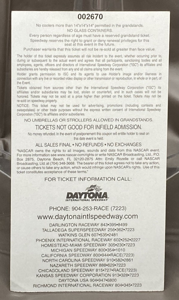 Sport: Auto Racing Year: 2001 Original/Reproduction: Original Vintage: Yes Event/Tournament: Daytona 500 Player: Dale Earnhardt Country/Region of Manufacture: United States