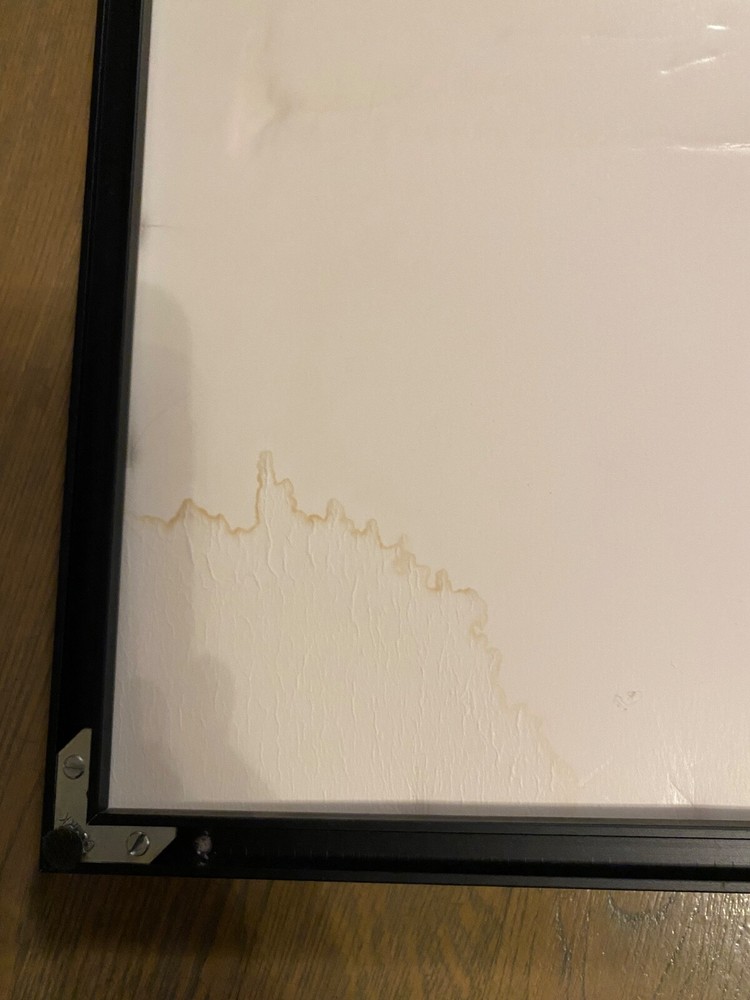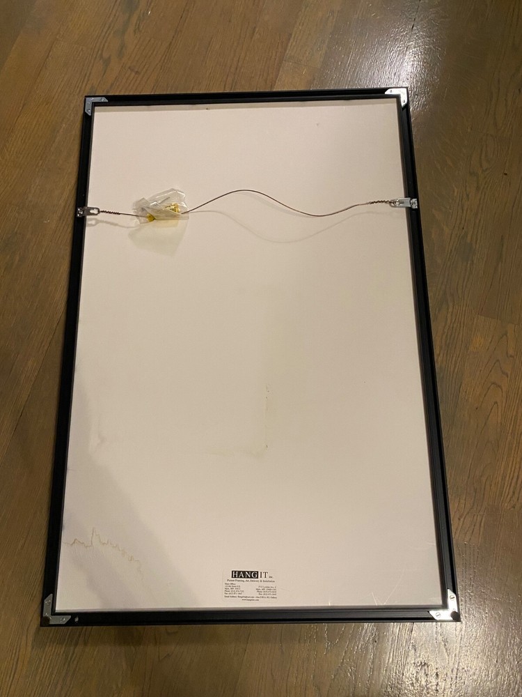 Nicely framed signed print. From a smokers home. There is some water damage in the lower corner.