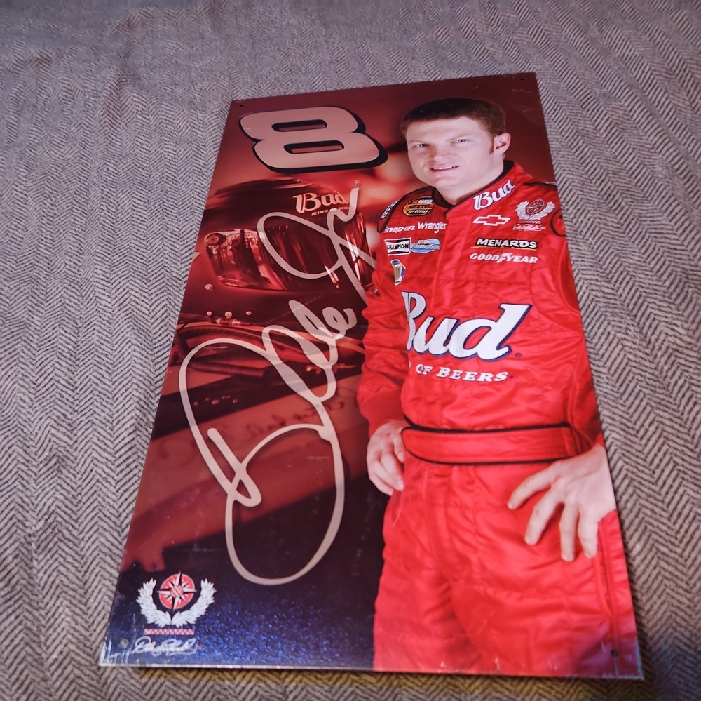The product is a lithographed metal poster or sign featuring Dale Earnhardt Jr., officially licensed by NASCAR. Measuring 16 inches by 8.5 inches, the poster showcases a multi-color design making it suitable for both male and female adult fans of auto racing. This collectible item is a must-have for fans of Dale Earnhardt Jr. and NASCAR, perfect for displaying on walls or in frames to show support for their favorite driver.