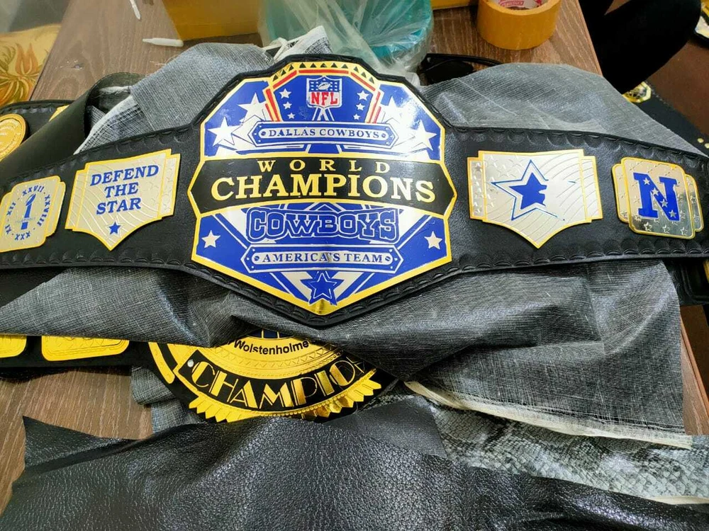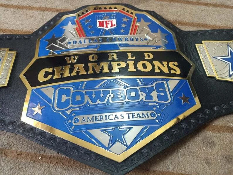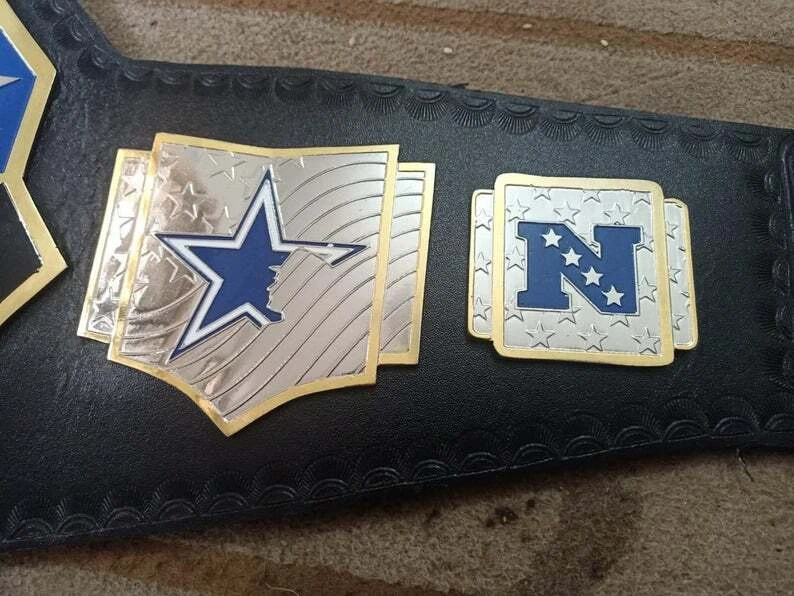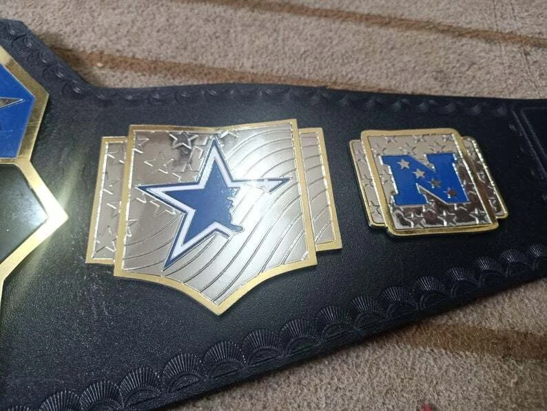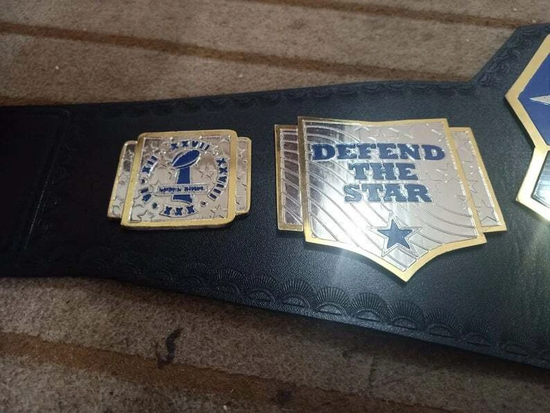 Welcome to our shop ------------------------------------------- We are specialist in manufacturing handmade products:: Our wide range of products include: >>>>Championship Belts WWE | WWF | AEW | UFC | WBC | WCW Product Description ** Dallas Cowboys championship belt *** Plate Metal: Brass (Zinc available on request with additional cost) Strap: 100% Leather Largest Waist Size: Fits upto 46'' Belt Length: ~50" Weight: 6.17 lbs | 2.81 Kg Plate Thickness: 2mm (4mm Version available on demand with additional cost) ::The belt is well crafted and manufactured to meet the quality demands of fans:: Get your hands on this marvelous piece now! Note: If you need further details kindly inbox us, we will try to be as responsive as possible. ------------------------------------------- Return Policy: Generally we don't have much complains on our products and we make sure to 100% satisfy our clients. We send the product in well Bubble Wrapped packaging so there is highly unlike chance of getting damaged item. In case there is a damage, we will try to give partial refund or you can ask for full refund within 30 days after returning the belt to origin. NOTE: 1. If you have placed the order by mistake or you have purchased a wrong item then we are not going to refund that. 2. Buyer will pay the shipping fee of returning the belt. ------------------------------------------- Happy Shopping! :)