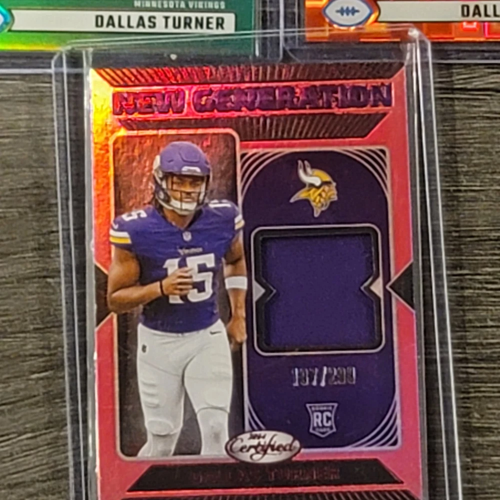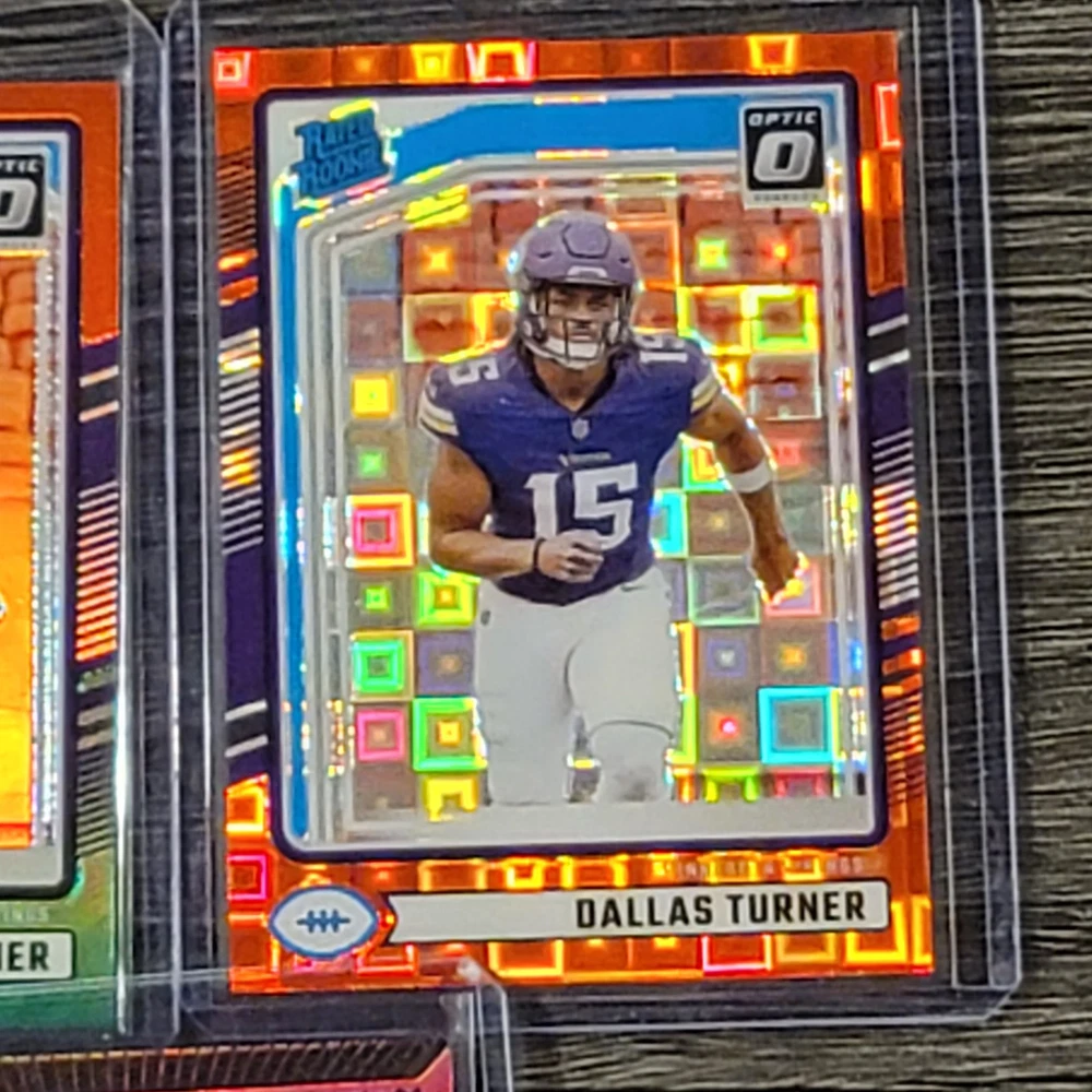 Dallas Turner RC Lot Donruss Optic Red Pandora Red Green Certified Patch /299. Condition is Used. Shipped with USPS Ground Advantage.
