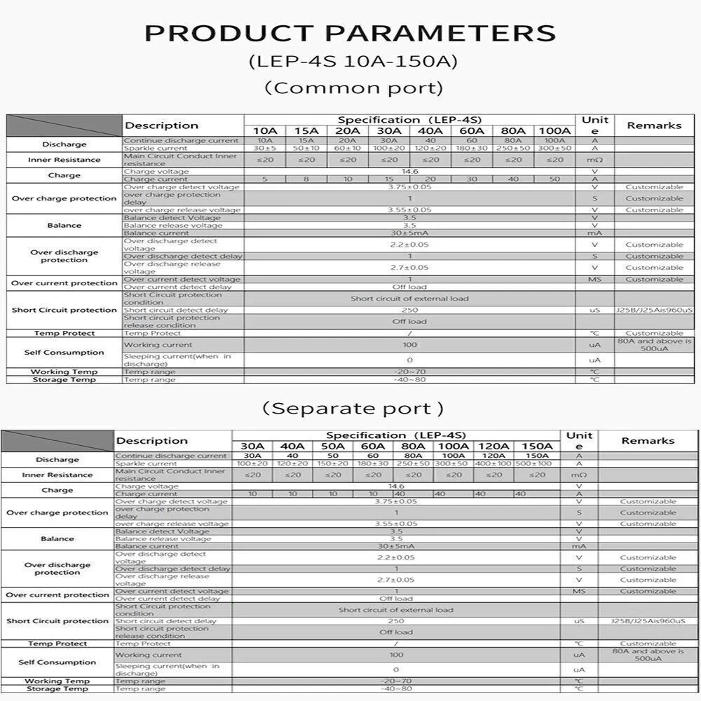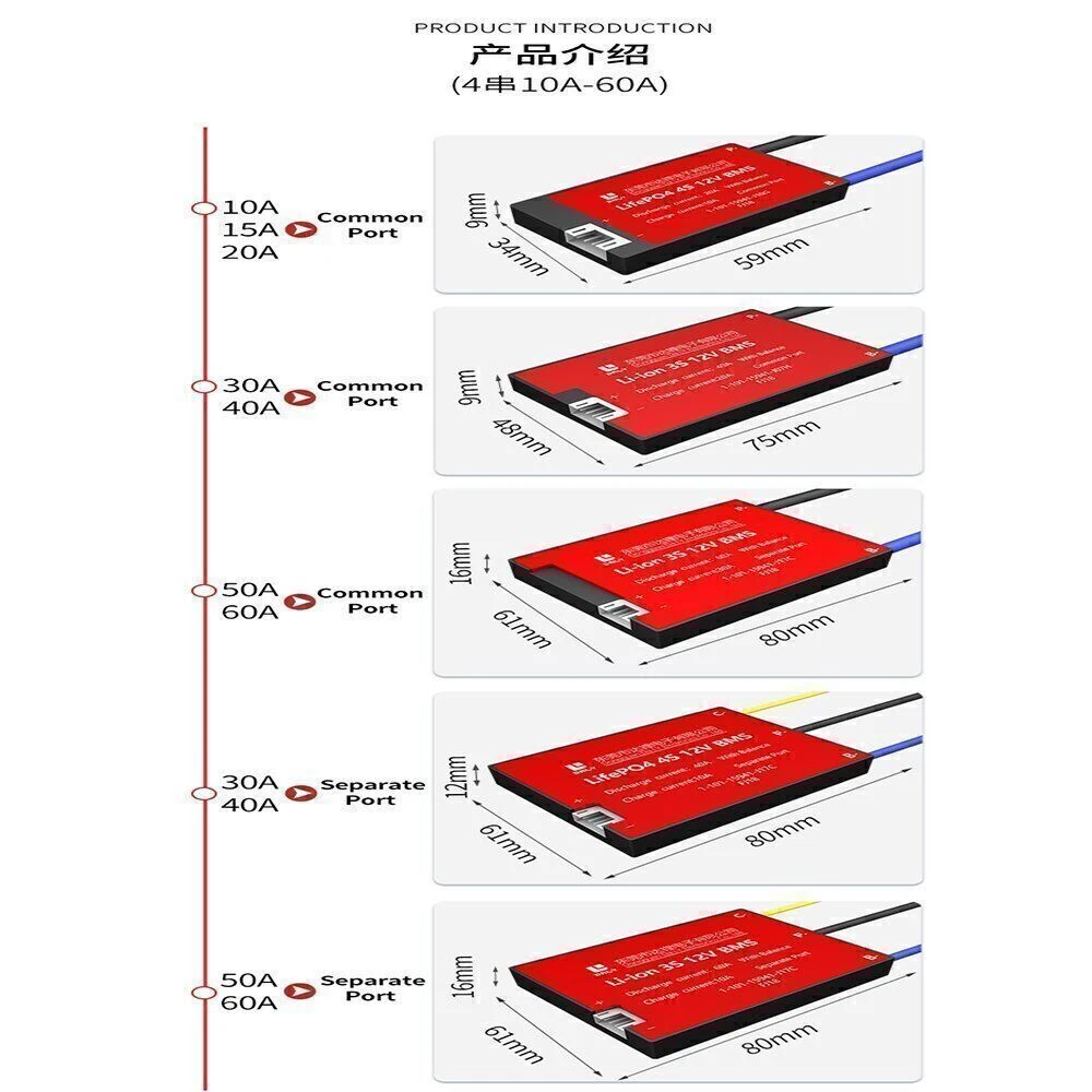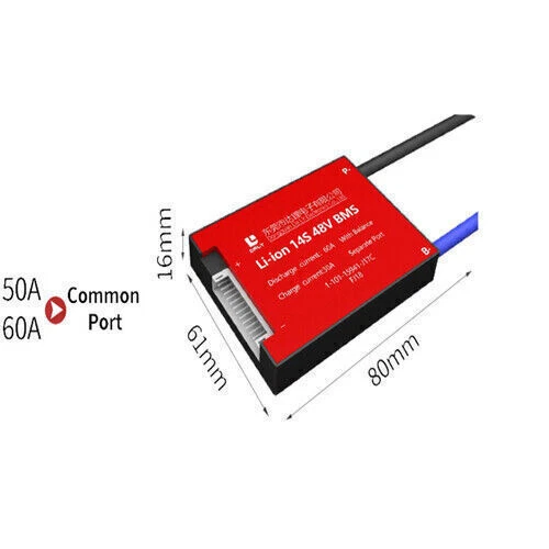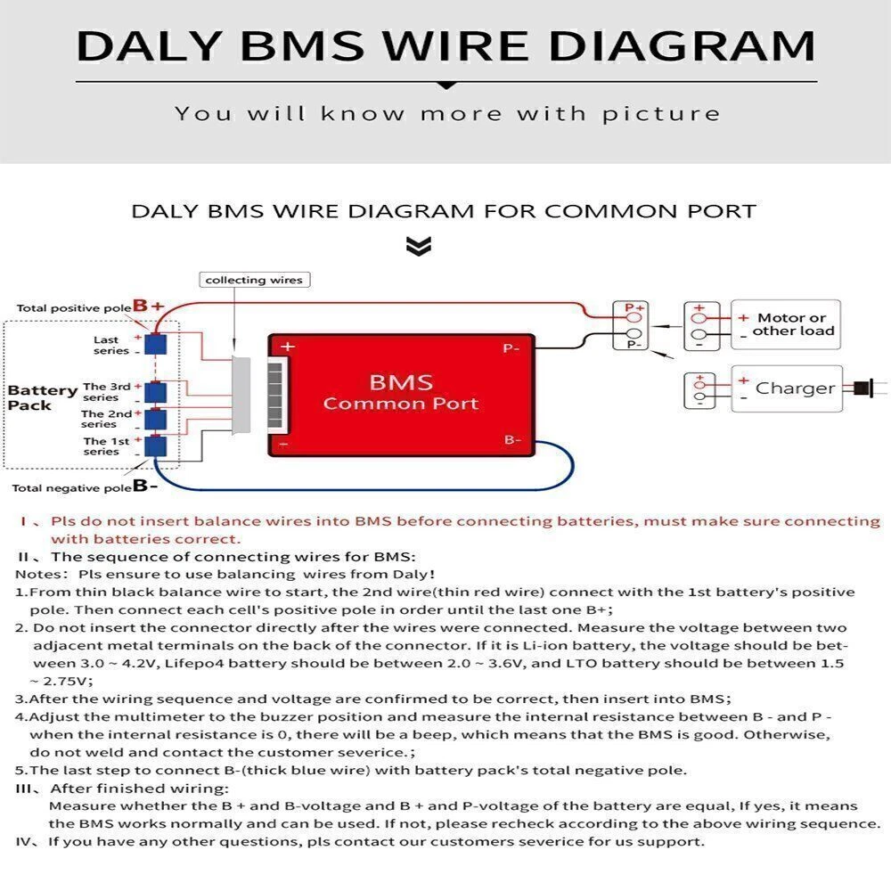 Daly Li-ion LiFePo4 BMS 3S-16S 10-100A Battery Protection Board w/Balance lot 9.1 USD Free shipping JK SMART BMS Lifepo4 Li-Ion Battery JK-B2A8S20P 4S-8S 200A Active Balance lot 17.99 USD Free shipping JK 4-24S 60-200A Smart BMS Lifepo4 Li-ion 0.6A-2A Active Balance 485/Display lot 10.95 USD Free shipping Daly Smart BMS LiFePo4 4S/8S/16S 12V/24V/48V 100A-300A w/Balance BT/Fan US lot 14.63 USD Free shipping JK Smart BMS 8S-24S 200A Li-ion LiFePo4 BMS 2A Active Balancer BT/RS485+LCD US 199.59 USD Free shipping Daly Li-ion LiFePo4 BMS 3S-16S 10-100A Battery Protection Board w/Balance US lot 13.71 USD Free shipping SAFE & SECURE SHOPPING 100% SATISFACTION GUARANTEED FAST SHIPPING You may also like Daly Li-ion LiFePo4 BMS 3S-16S 10-100A Battery Protection Board w/Balance lot 9.1 USD Free shipping JK SMART BMS Lifepo4 Li-Ion Battery JK-B2A8S20P 4S-8S 200A Active Balance lot 17.99 USD Free shipping JK 4-24S 60-200A Smart BMS Lifepo4 Li-ion 0.6A-2A Active Balance 485/Display lot 10.95 USD Free shipping Daly Smart BMS LiFePo4 4S/8S/16S 12V/24V/48V 100A-300A w/Balance BT/Fan US lot 14.63 USD Free shipping JK Smart BMS 8S-24S 200A Li-ion LiFePo4 BMS 2A Active Balancer BT/RS485+LCD US 199.59 USD Free shipping Daly Li-ion LiFePo4 BMS 3S-16S 10-100A Battery Protection Board w/Balance US lot 13.71 USD Free shipping Daly Hardware BMS 3S-14S 10A-60A Li-ion LiFePo4 Battery Protection Board -US SAU Product Description Daly Hardware BMS 3S-14S 10A-60A Li-ion LiFePo4 Battery Protection Board -US SAU Feature: Use of top quality (A-level) protective integrated circuit IC, from the solution of Seiko of Japan. Strong load ability, use high voltage resistance, low inner resistance power Mosfet. The heat sink will greatly help cooling. IC itself has power balancing function. The circuit is simple and reliable. Typical voltage detection for each cell. So each battery will be prevented over charged or over discharged. Over current and short circuit protection Function is very reliable. Long time short circuit of the load won't affect the PCB and the battery. Temperature protection during charging and discharging. Extremely low power consumption. The consumption of the whole device is less than 50uA. PCB use high anti-corrosion, high water resistance, high impedance ESD conformal Coating. Specification: Model: DL4S (3.2V Rated LiFePO4 not for 3.7V rated Li-ION Battery ) . Name: Battery protection board Features: Balanced at the same mouth Suitable for: scooters, electric vehicles, 18650 lithium battery packs, etc. Specification: 4S 12V 10A / 15A / 20A / 30A/40A/50A/60A Colour:Red Material:metal Package includes: 1*4SS BMS 1*Cable FAQ Q: How do I know what material OR type my battery is ? A: Please look the battery body,if the normal voltage of your battery shows 3.2V,the battery is LiFePo4.If the normal voltage of your battery shows 3.6V or 3.7V, the battery is Li-ion or Li-polymer battery, You can also ask battery manufacturer for the material of battery. Q: Is this BMS suit for my battery? A: This BMS suit your battery or not depends on below 2 points: How many series you cell is in your battery pack? The BMS you buy must be same series as your battery pack. What material your battery is? Only the LiFePo4 battery has different electric parameter from other battery, so if you need buy the BMS for LiFePo4, Please let us know firstly. Q: What is the Common port and Separate port? what is the difference? A: We take 13S 48V16A BMS as example: Common port 16A means your charge cathode and discharge cathode are connected in the same point end (our P-), charge cathode and discharge cathode are used in the common connection port, so the charge current and discharge current are same as 16A. Separate port is separately connected by charge cathode (our C-) and discharge cathode (our P-), so the charge current and discharge current are different, discharge current is 16A, charge current is 8A. Q: What is the balance function?Do we need cell balance or not? A: The working principle and function are as followings: When your one cell voltage was reached balance voltage(Li-ion 4.18V, LifePo4 3.6V), that cell balance start work, balance resistance starts discharge with 35mA, that cell was in both charging and discharging status, and other cells were not reached balance voltage(Li-ion 4.18V, Life Po43.6V), so they are only in charging status, when the fast cell voltage was reached overcharge voltage (Li-ion 4.25V, Life Po4 3.75V),BMS starts off power protection, all the cells are stop charging, this process will enable your battery charging in balance current, and your battery voltage are in balance status. However, if your cell voltage difference are in a big range, The equilibrium effect is almost zero,The solution is to replace cells with large voltage gaps. Q: The relationship between battery capacity(AH or mAH) and BMS current(A)? A:There is no direct relationship between battery capacity and BMS current, big capacity doesn't mean big current, but rely on continue current, that is to say if your engine is powerful, you should choose high current of BMS, it is not relied on battery capacity. Q: What type of charger should i choose? A: Lithium battery must choose specific charger, don't use charger for leadacid battery, for leadacid charger may have MOS with high pressure breakdown protection, which will not protect of BMS over charge. LiFePo4 battery charger voltage = number of battery strings X 3.6V, while Li-ion battery charger voltage = number of battery strings X 4.2V. Q: What current BMS should I choose ? A: Take 10S 36V as example: What current BMS you choose is depend on your E-bicycle motor power and current limitation of controller,eg.16A for 350W and below, 25A for 500W and below, 35A for 800W and below, 60A for 1000W and below, over 1200W are contact with our service specialist for suggestion, continue current shall be higher than current limitation in controller. Q: Do you have Minimum Order Requirement (MOQ)? A: No, 
