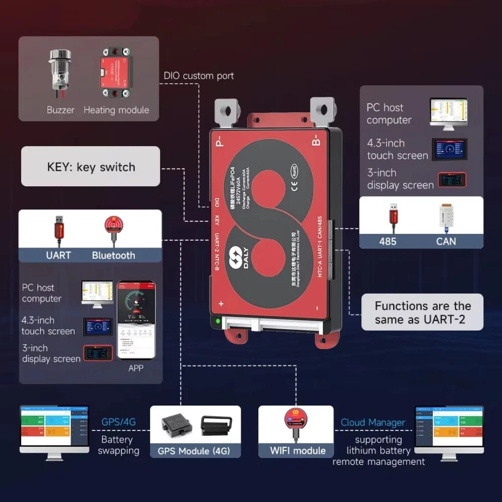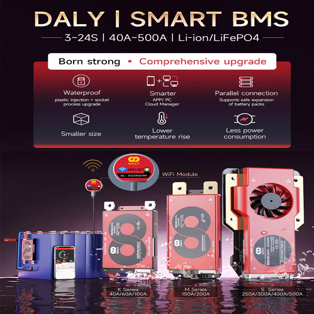 Daly Smart WIFI BMS 4S-20S 40A-500A for Li-ion LiFePo4 battery w/BT module lot