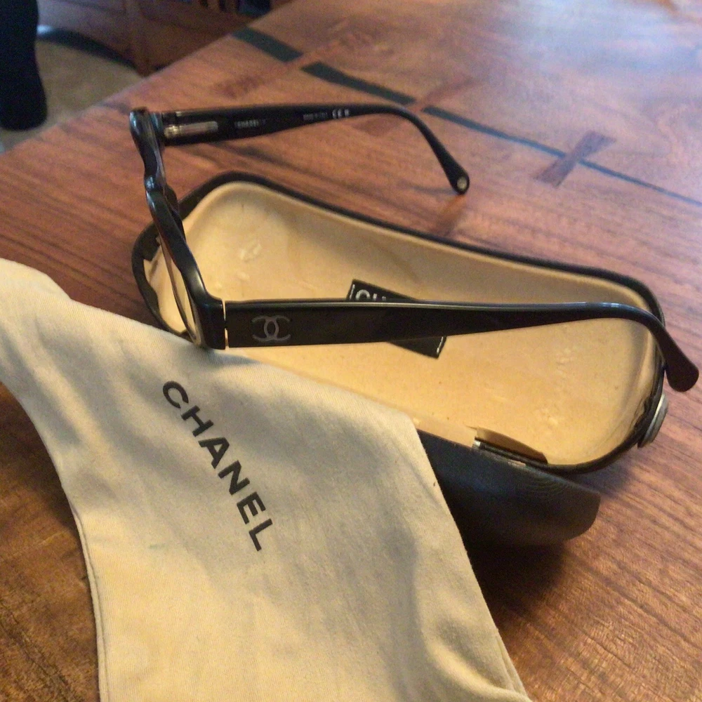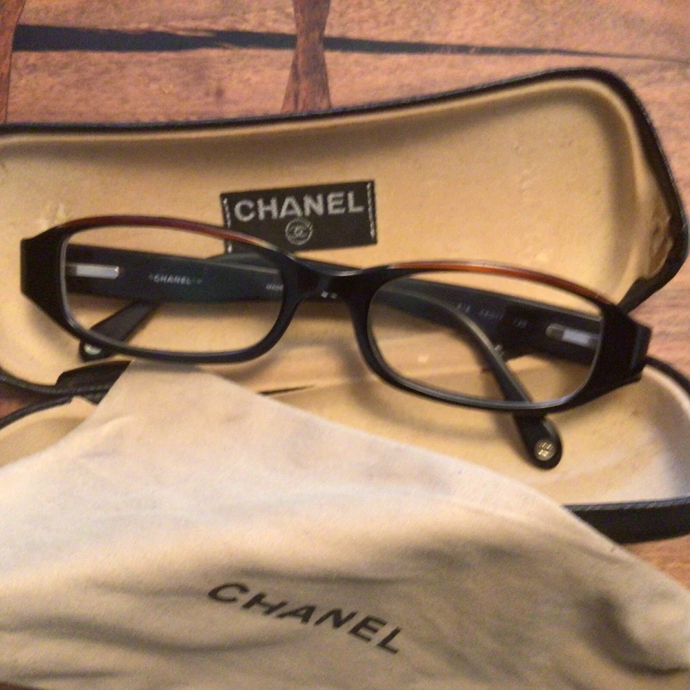 Damaged Chanel Prescription Eyeglass Frames Made In Italy With Case And Dust Bag. These are pre-owned and loved. The left arm is wide and loose and may not be able to be fixed, so please understand these are sold “as is”. Across the top front is approximately 5”. The case (that shows signs of use) and dust bag are included. The frames have prescription lenses. Buyer pays $6 shipping. I will only ship within the U.S. Thank you for looking.