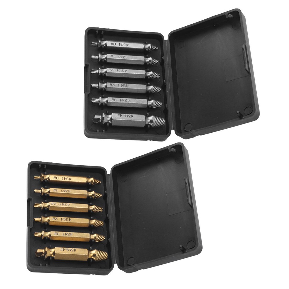 Feature: 1. EXQUISITE WORKMANSHIP: Damaged screw extractor adopt exquisite workmanship, not easy to rust, corrosion resistant and oxidation resistant, very durable 2. CAREFULLY SELECTED MATERIAL: Stripped screws remover is made of high speed steel with high hardness, high wear resistance, high temperature strength, strength and toughness match well 3. QUICK REMOVAL: Use the screw extractor set for easy and quick removal of broken screws, simple and efficient to remove broken screws from any surface 4. WORK WITH ANY DRILL BIT: This damaged screw extractor works with any drill bit on any screw or bolt. Remove stripped, painted, rusted or round screws and bolts with a dynamic extraction drill kit 5. GIFT TO MEN: Broken screw remover set can be used as stocking stuffers for men, father, boyfriend, husband on Christmas, birthday, or Valentines Day, which is a cool stuff gadget Specification: Item Type: Damaged Screw Extractor Set Material: High speed steel Product Specification: 6Pcs: Type 0, type 1, 2 x type 2, type 3, type 4 Take Out Range: Type 0: Approx. 2 ~ 3mm / 0.08 ~ 0.12in Type 1: Approx. 3 ~ 5mm / 0.12 ~ 0.2in Type 2: Approx. 4 ~ 8mm / 0.16 ~ 0.31in Type 3: Approx. 5 ~ 10mm / 0.2 ~ 0.39in Type 4: Approx. 6 ~ 12mm / 0.24 ~ 0.47in Package List: 6 x Double Head Screw Extractor 1 x Storage Box