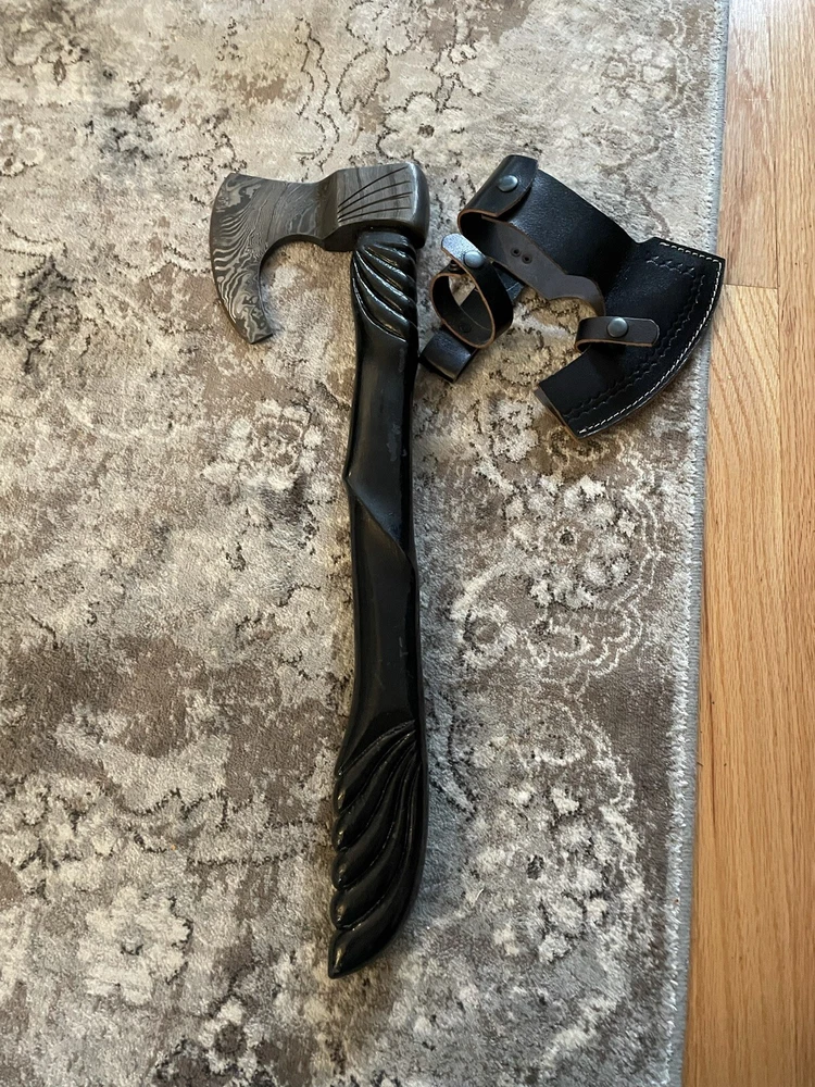 Custom Hand Forged Damascus Carbon Steel Viking Axe Ash Wood Shaft.