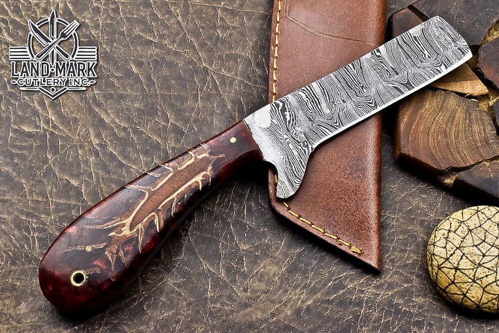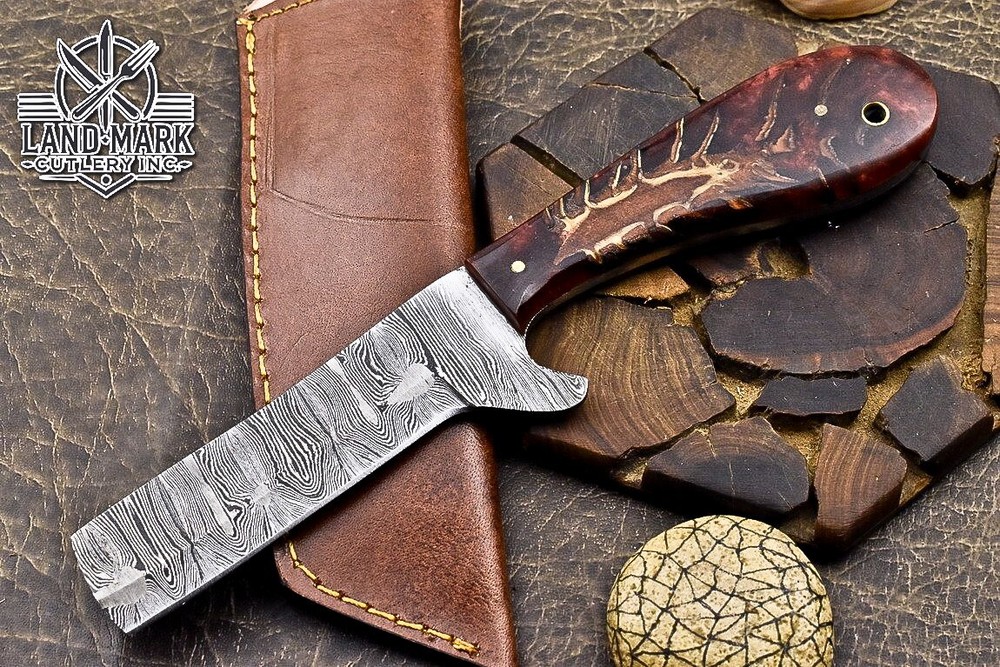 Custom Hand Made DAMASCUS STEEL HUNTING KNIFE WITH PINE CONE HANDLE We offer a shipping discount for More then one purchased . And discount will be apply on combine invoice, Discount will not apply on separate payment. ITEM DETAILS OVER ALL LENGTH 8.0 inches long (Approx) HANDLE LENGTH 4.0 inches long (Approx) BLADE LENGTH 4.0 inches long (Approx) BLADE HARDNESS 58-60 HRC Which Holds The Sharp Edge For Long Time. HANDLE PINE CONE COVER LEATHER SHEATH This Awesome custom made KNIFE has a nice hand forged with the combination of 4340 & 1080 steel. HOW OUR DAMASCUS IS MADE: All our Damascus is real and not just an acid etch. Damascus is a mixture of 1080HC and 4340 nickel carbon. You heat them up together and then fold the bar over and over to get the desired layers, ours are 396 layers. Then you burn the blade in acid, and it turns the nickel satin color and the high carbon turns blackish gray. This is how the layers are exposed to show the layers of the new steel created coined "Damascus". All Damascus is acid etched to show the layers. If you high polish the metal it will be shinny satin like all steels. Only after you burn the sides of the blade with acid do you see the layers of the two steels. Makes sense? After we make our knives we high polish the handles and put an edge on the blade. The high polishing buffs off the acid burned layer of the handle, and the blade edge is sharpened and the acid burned edge becomes satin. You can re-burn the tang of the blade near the handles and the edge of the blade and it will show the layers once more. All our knives are hand made, durable and unique ***** YOU WILL RECEIVED THE SAME KNIFE Qality Standards Our Damascus blades are made from high quality non-stainless steels which rival or exceed any Damascus blade made from the 10 series with 4340. Our Damascus combination has taken years to perfect and has been tested under a variety of application which will offer professional performance in categories of toughness, strength (lateral stress) and edge honing and holding ability. In a 5 spot Rockwell test our blades will average near or close to 58 which offers a perfect balances between its toughness and strength.Our blades due to carbon content need to be regularly treated with wax and/or 3 in 1 oil to maintain its superior quality. Questions if you have any question feel free to send us message we aim to answer all questions within 24 hours Feedback If you are not satisfied with our service please contact us before leaving any negative or natural feedback. We will resolve all issues as quickly as possible. Disclaimer We are not responsible for any injuries associated with the use of our tools. Our products are intended for legal use only by responsible buyers. Therefore, we will not sell our products to anyone under the age of 18. Before bidding please check your country laws as some countries Custom don't allow this. If your purchase is held by Custom Authorities in your country/State we will not be responsible for that and no refund will be issued Shipping We offer a 20% shipping discount for More then one purchased . And discount will be apply on combine invoice, Discount will not apply on separate payment We ship within 24 hours after receiving complete payment but this can be delayed due to week ends or Governments and Religious Festivals . . This is beyond our control and we apologize for this inconvenience. Precautions Our Tools are very sharp so open and use them very carefully We are not responsible for any injuries associated with the use of our tools Tips to Care knife 1. NEVER STORE YOUR KNIFE FOR LONG TIME IN LEATHER SHEATH. 2. LEATHER CAN ABSORB WATER, WHICH WILL RUST THE KNIFE. 3. ALWAYS CLEAN THE BLADE AFTER USING WITH OIL OR WAX