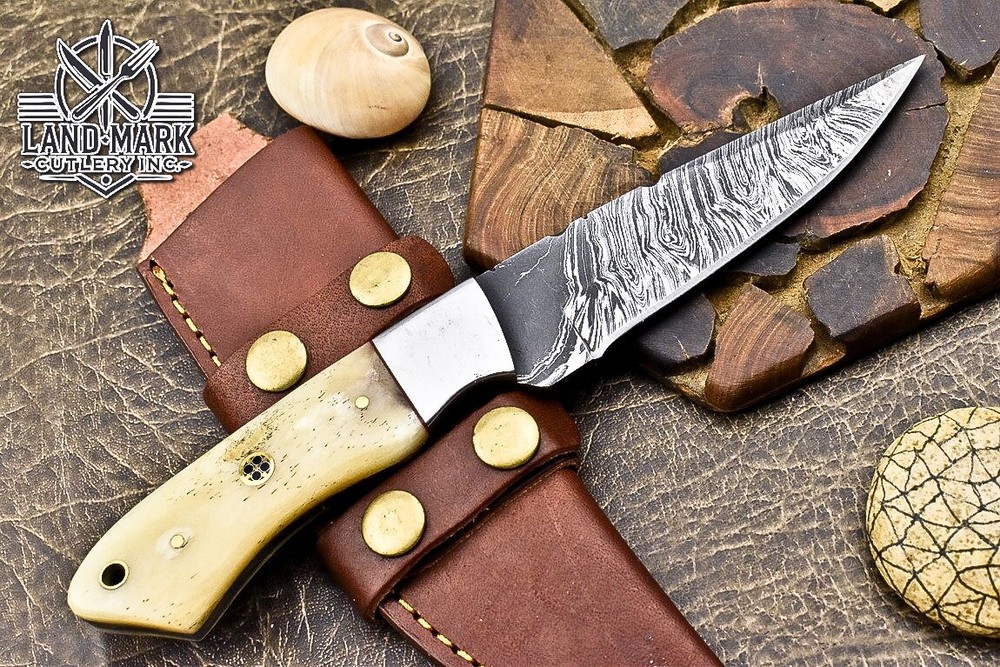 This knife is absolutely stunning! The Damascus steel blade is razor-sharp and holds its edge perfectly, while the bone and steel bolster handle gives it a classic, rugged feel. The craftsmanship is top-notch—you can tell it's handmade with care. It fits comfortably in hand, and the included leather sheath is a nice touch. Great for hunting or as a collector’s piece, and the shipping discount for multiple purchases is a sweet bonus. Really impressed with the quality!
