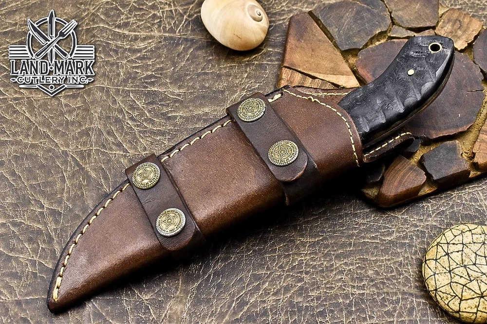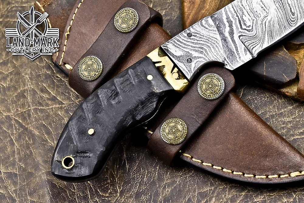 This Damascus steel hunting knife is a true work of art! The ram horn handle adds a rugged yet elegant touch, and the blade’s sharpness holds up incredibly well. The leather sheath fits perfectly, making it both functional and stunning. The craftsmanship is flawless—definitely worth every penny, especially with the combined shipping discount. A must-have for any outdoors enthusiast or collector!
