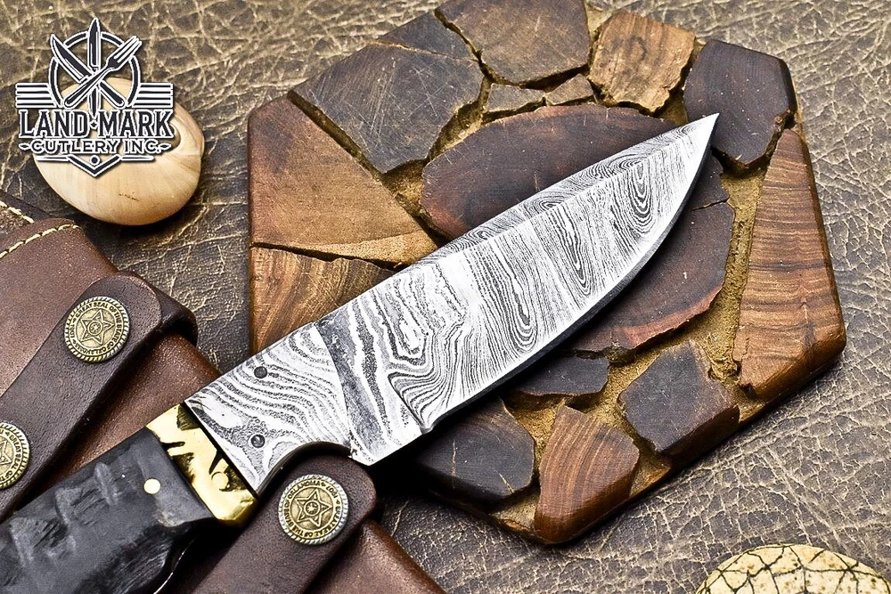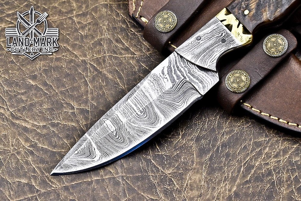 Custom Hand Made DAMASCUS STEEL HUNTING KNIFE WITH RAM HORN HANDLE We offer a shipping discount for More then one purchased . And discount will be apply on combine invoice, Discount will not apply on separate payment. ITEM DETAILS OVER ALL LENGTH 8.0 inches long (Approx) HANDLE LENGTH 4.0 inches long (Approx) BLADE LENGTH 4.0 inches long (Approx) BLADE HARDNESS 58-60 HRC Which Holds The Sharp Edge For Long Time. HANDLE RAM HORN COVER LEATHER SHEATH This Awesome custom made KNIFE has a nice hand forged with the combination of 4340 & 1080 steel. HOW OUR DAMASCUS IS MADE: All our Damascus is real and not just an acid etch. Damascus is a mixture of 1080HC and 4340 nickel carbon. You heat them up together and then fold the bar over and over to get the desired layers, ours are 396 layers. Then you burn the blade in acid, and it turns the nickel satin color and the high carbon turns blackish gray. This is how the layers are exposed to show the layers of the new steel created coined "Damascus". All Damascus is acid etched to show the layers. If you high polish the metal it will be shinny satin like all steels. Only after you burn the sides of the blade with acid do you see the layers of the two steels. Makes sense? After we make our knives we high polish the handles and put an edge on the blade. The high polishing buffs off the acid burned layer of the handle, and the blade edge is sharpened and the acid burned edge becomes satin. You can re-burn the tang of the blade near the handles and the edge of the blade and it will show the layers once more. All our knives are hand made, durable and unique ***** YOU WILL RECEIVED THE SAME KNIFE Qality Standards Our Damascus blades are made from high quality non-stainless steels which rival or exceed any Damascus blade made from the 10 series with 4340. Our Damascus combination has taken years to perfect and has been tested under a variety of application which will offer professional performance in categories of toughness, strength (lateral stress) and edge honing and holding ability. In a 5 spot Rockwell test our blades will average near or close to 58 which offers a perfect balances between its toughness and strength.Our blades due to carbon content need to be regularly treated with wax and/or 3 in 1 oil to maintain its superior quality. Questions if you have any question feel free to send us message we aim to answer all questions within 24 hours Feedback If you are not satisfied with our service please contact us before leaving any negative or natural feedback. We will resolve all issues as quickly as possible. Disclaimer We are not responsible for any injuries associated with the use of our tools. Our products are intended for legal use only by responsible buyers. Therefore, we will not sell our products to anyone under the age of 18. Before bidding please check your country laws as some countries Custom don't allow this. If your purchase is held by Custom Authorities in your country/State we will not be responsible for that and no refund will be issued Shipping We offer a 20% shipping discount for More then one purchased . And discount will be apply on combine invoice, Discount will not apply on separate payment We ship within 24 hours after receiving complete payment but this can be delayed due to week ends or Governments and Religious Festivals . . This is beyond our control and we apologize for this inconvenience. Precautions Our Tools are very sharp so open and use them very carefully We are not responsible for any injuries associated with the use of our tools Tips to Care knife 1. NEVER STORE YOUR KNIFE FOR LONG TIME IN LEATHER SHEATH. 2. LEATHER CAN ABSORB WATER, WHICH WILL RUST THE KNIFE. 3. ALWAYS CLEAN THE BLADE AFTER USING WITH OIL OR WAX